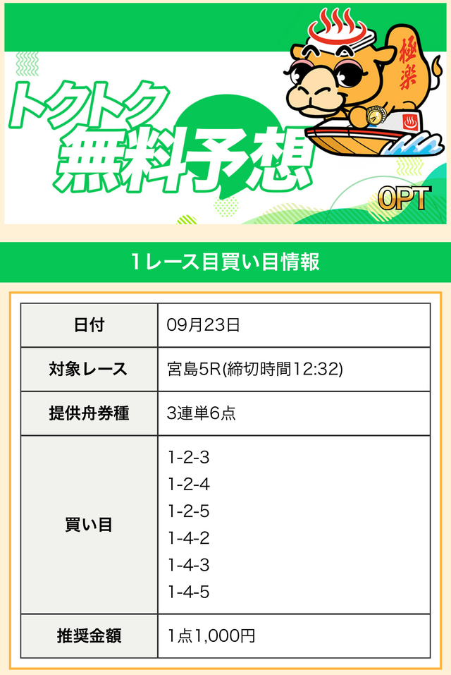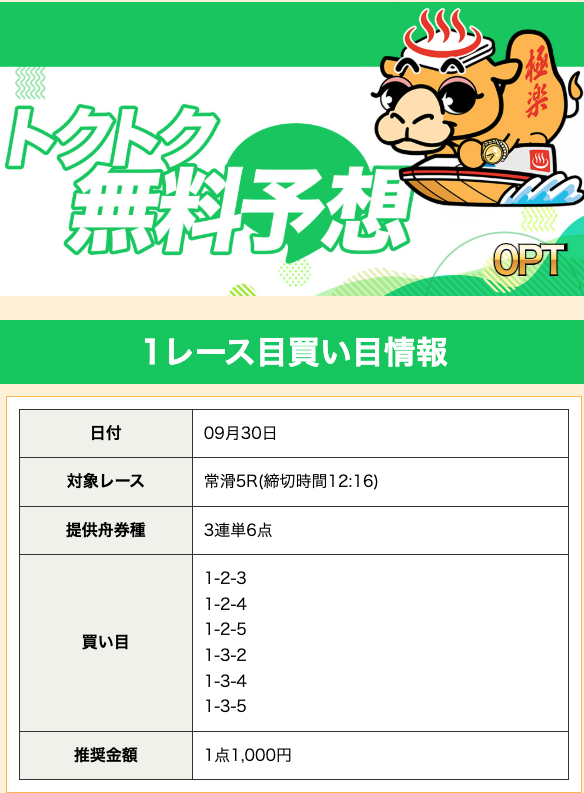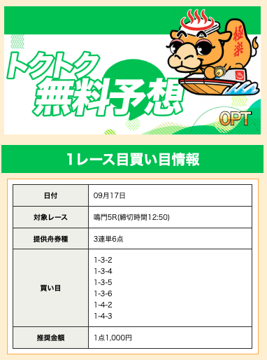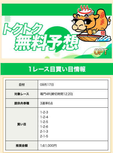 競艇ゴクラクの無料予想の詳細は以下の通りです。