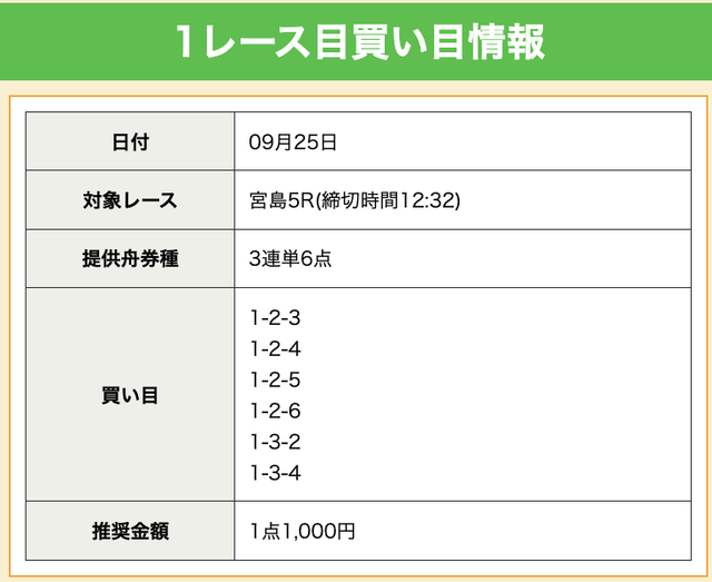 | 投資金額 | 210,000円 (情報料金・ 舟券代込み) |