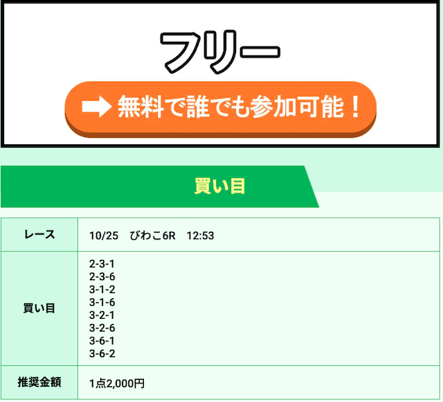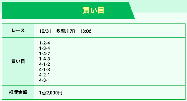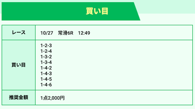 堅い日・荒れる日の見極め買い目が参考になって、無駄打ちが減りました。無料予想でも普通に当たるし、買い目が見やすい。推奨金額があるので、必要以上に賭けさせないようにするのが助かる。