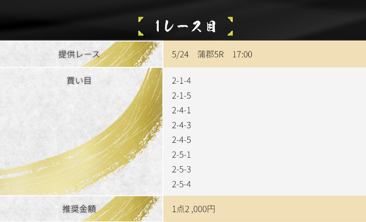 | ①-③-⑤ | 7.9倍 | 2,000円 |