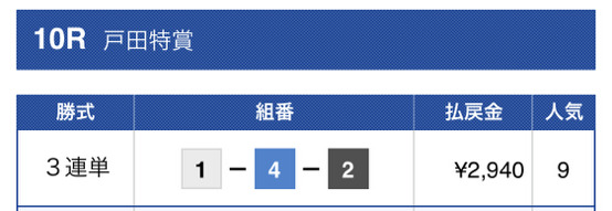 - 匿名1点1点の金額が調整されてて、オッズに対する意識の高さを感じた。 厚く押さえてたとこが来たから利益が残った。トリガミにならないように組んでる予想って少ないからこれは貴重かも。