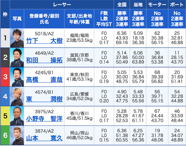 1号艇と3号艇にA1級選手が配置された1戦です。