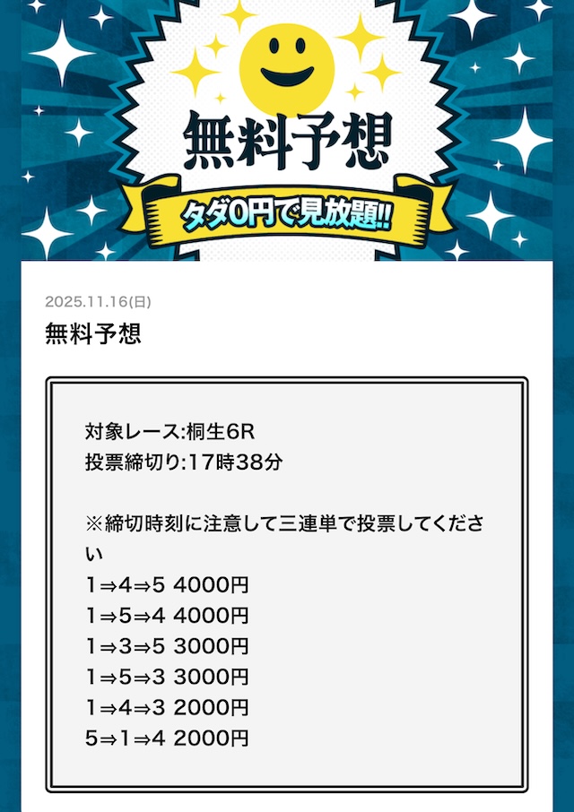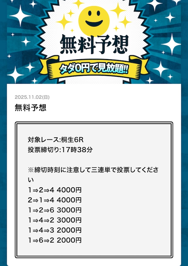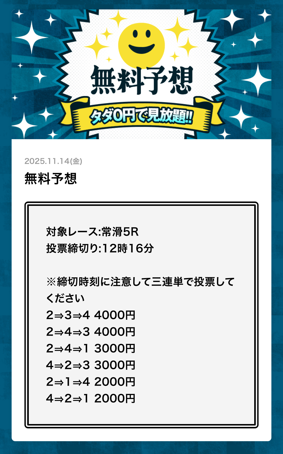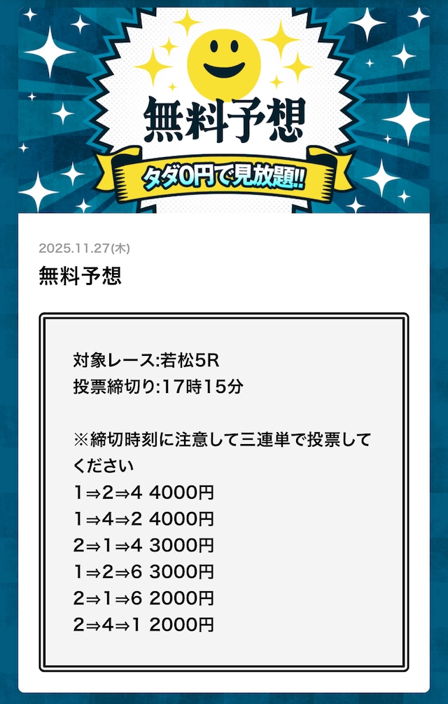 無料予想であれだけ良い結果を出し続けられているので一定信頼はありますが、果たして