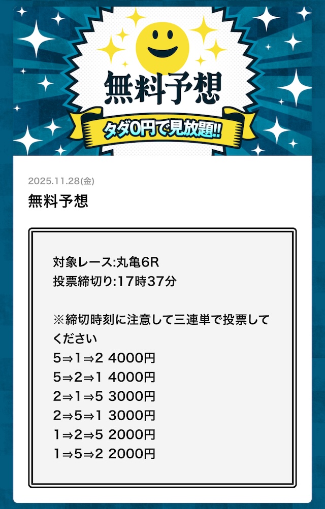 連日このレベルの予想が提供されている。 売り切れる前に、チェック必須。 |