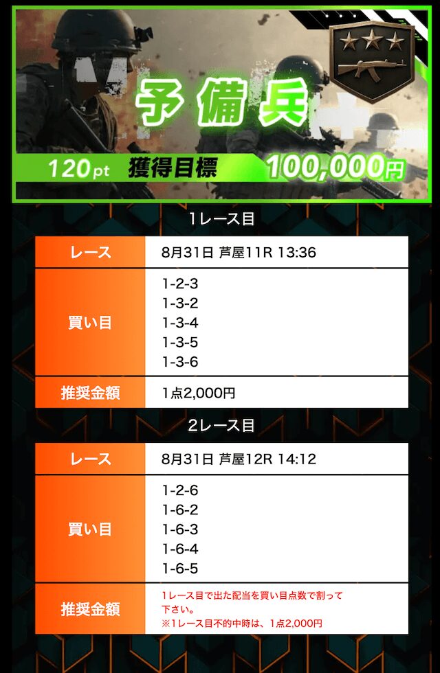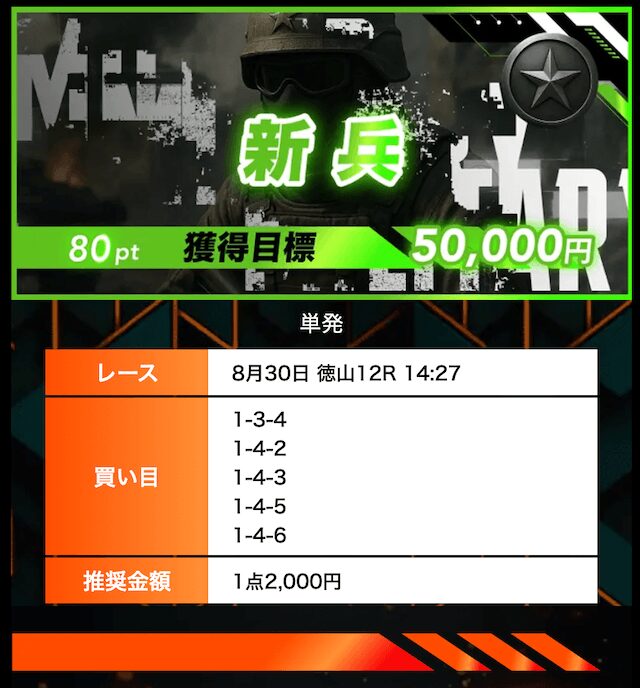 有料予想に参加するなら『兵士』・『軍曹』がおすすめ!