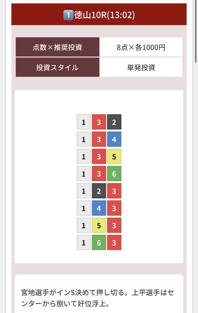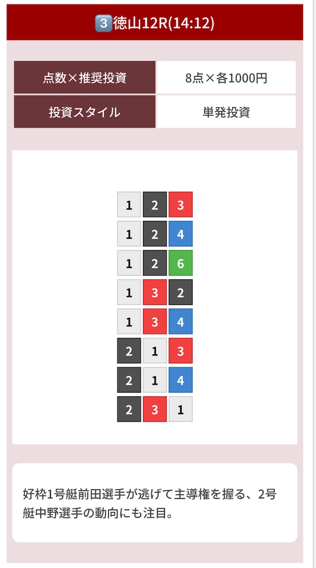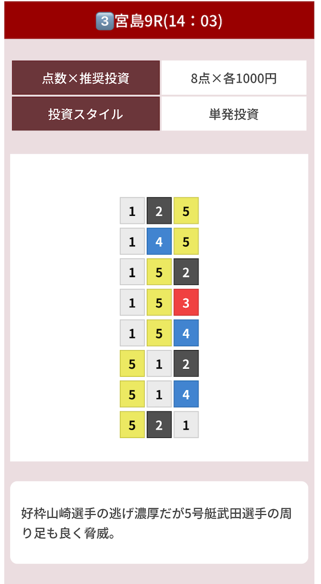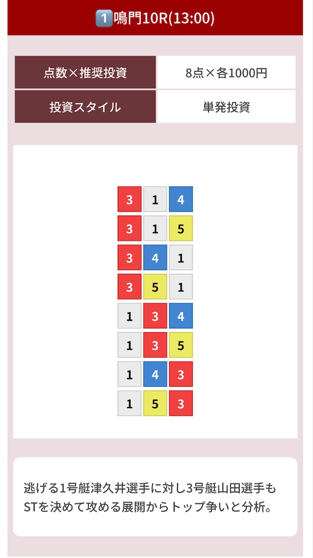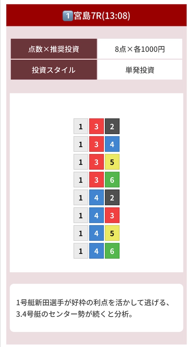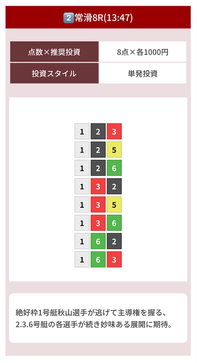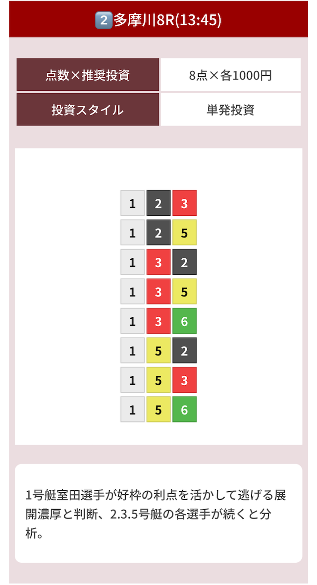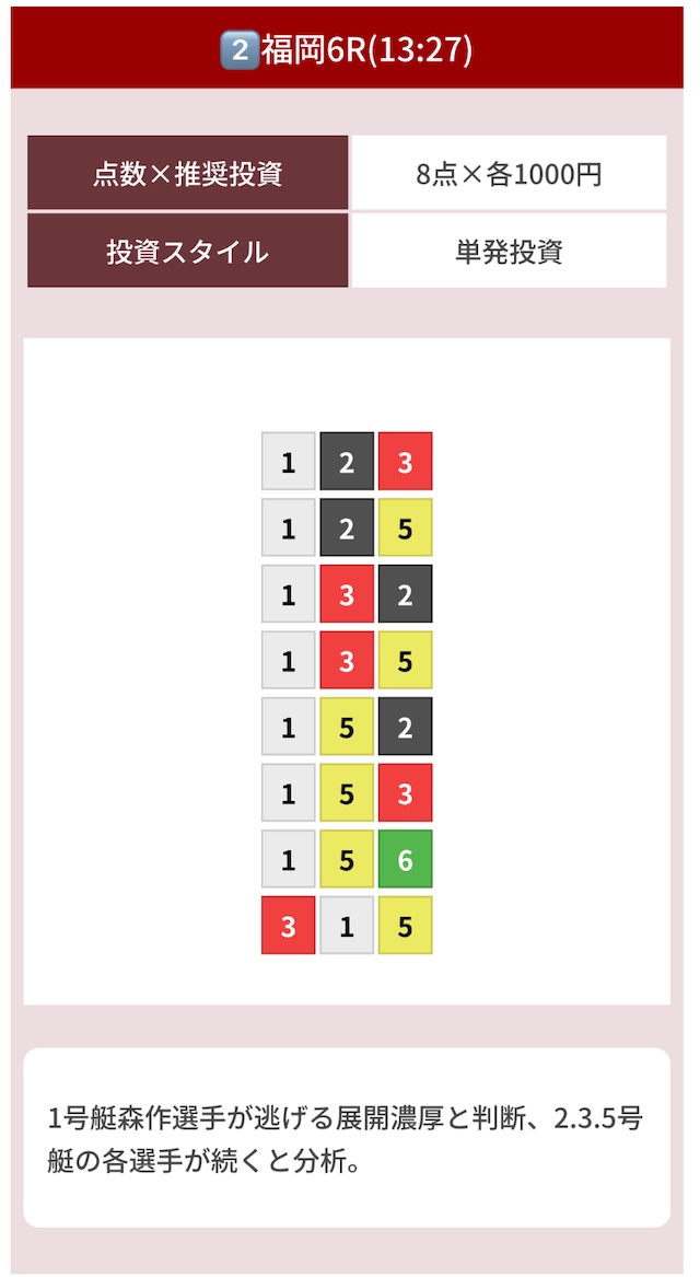 8点あっても無駄打ちがなく、当たるために必要な買い目だけが入ってる印象。
