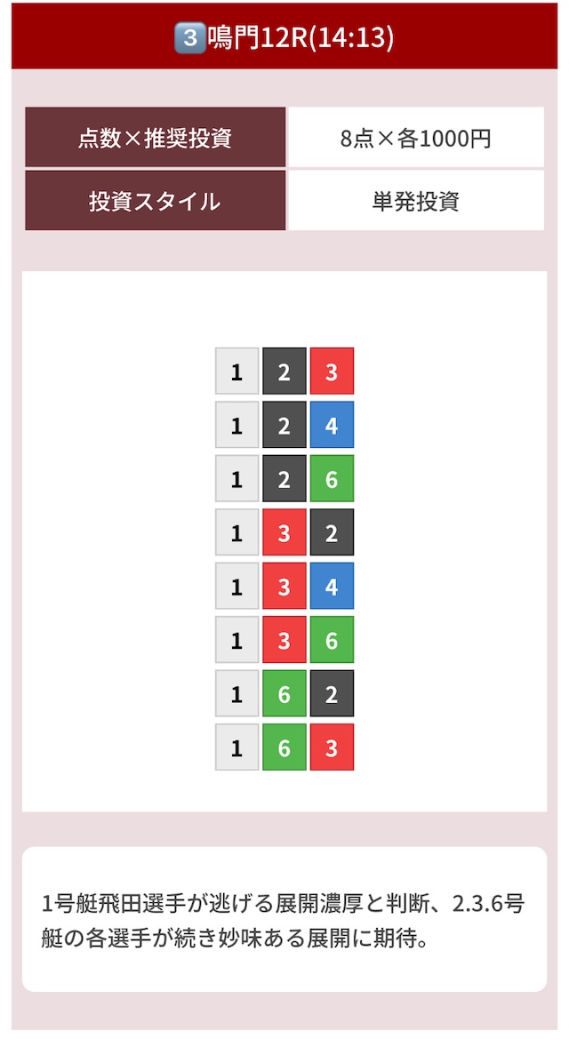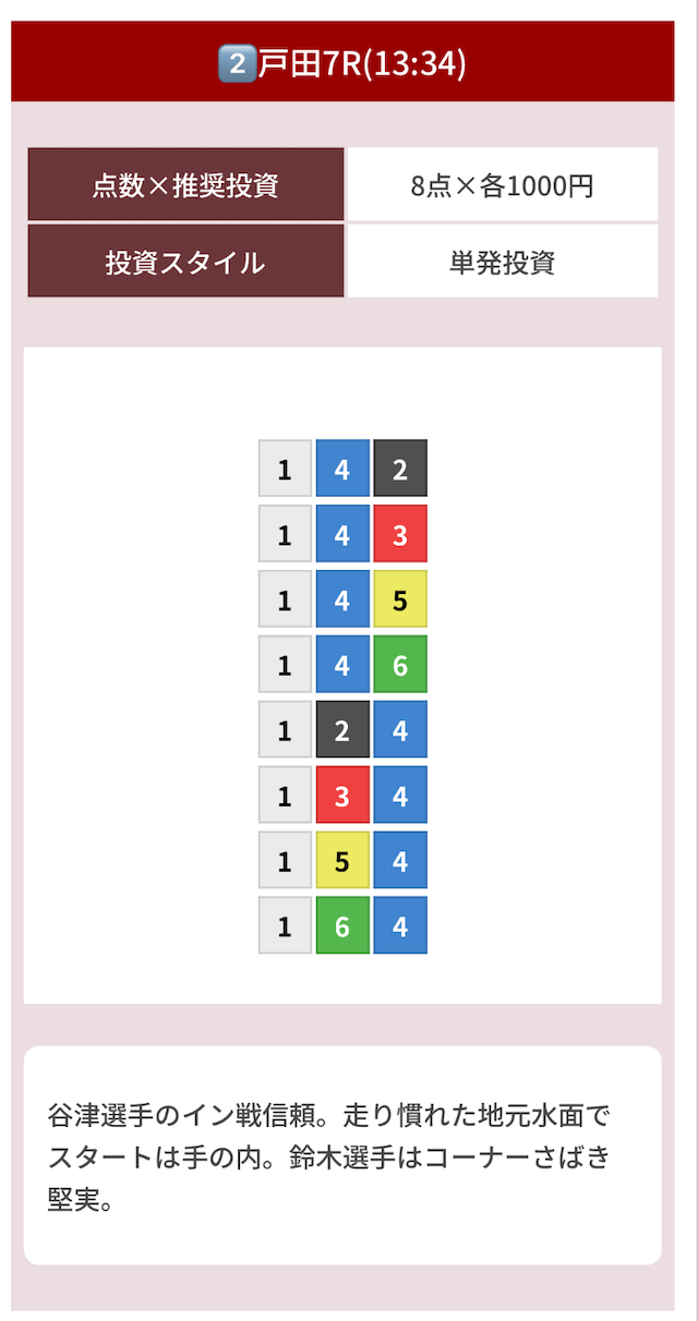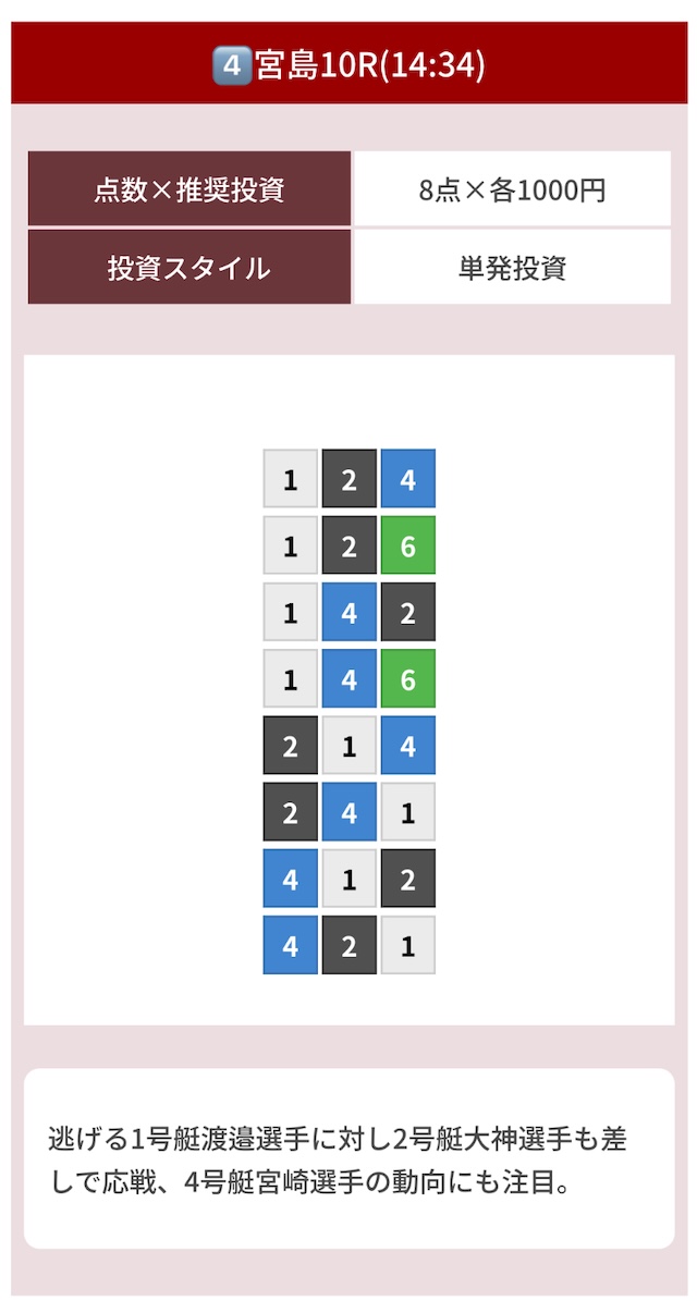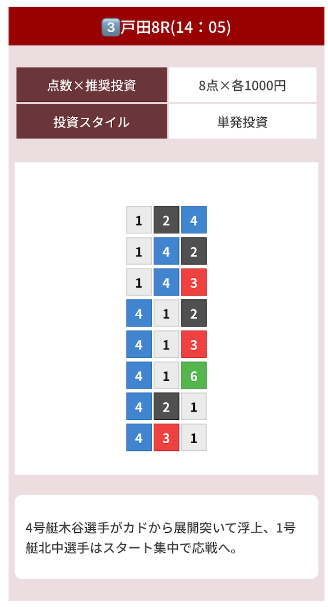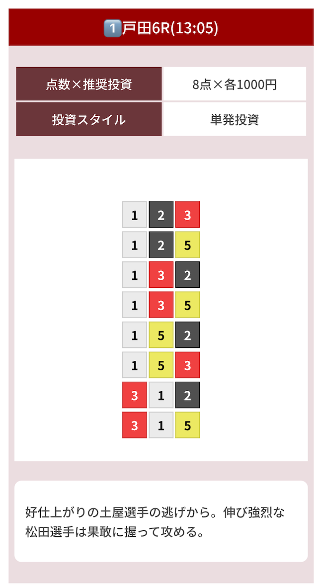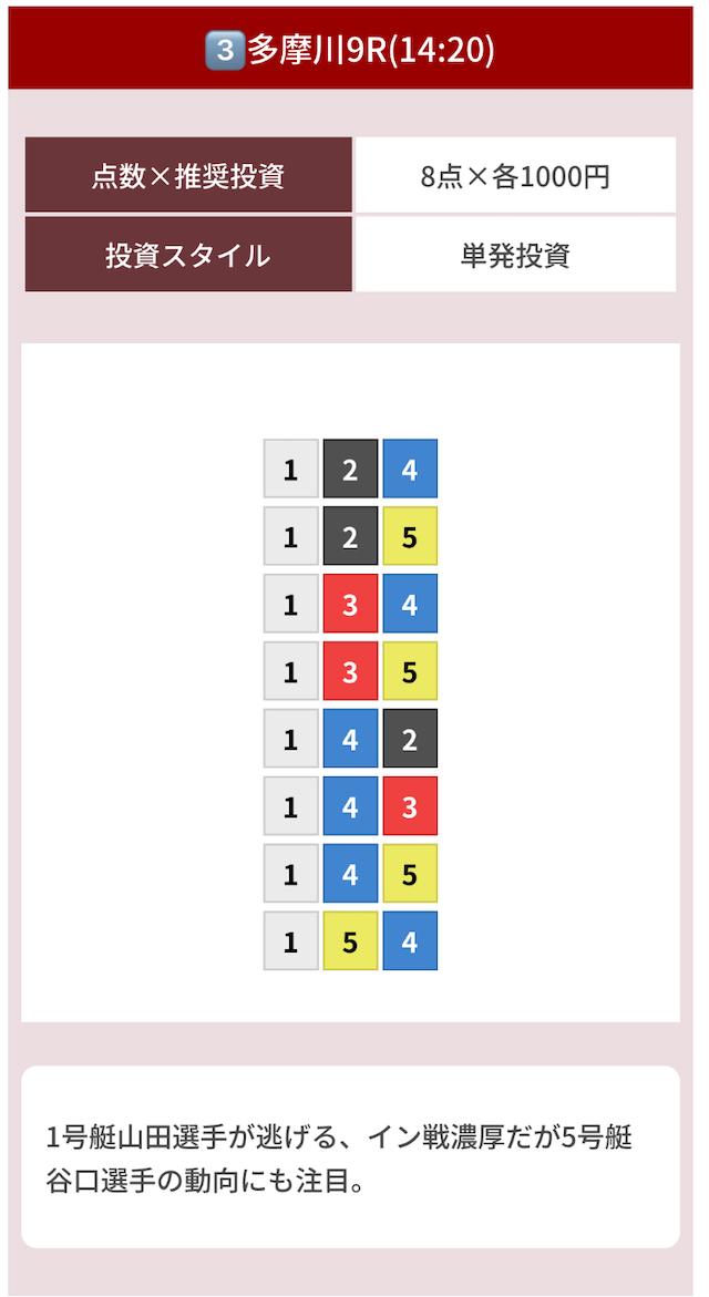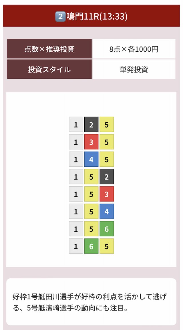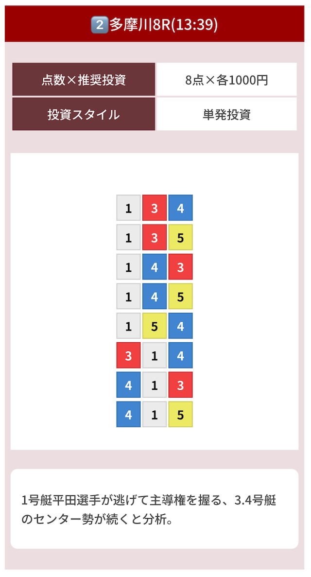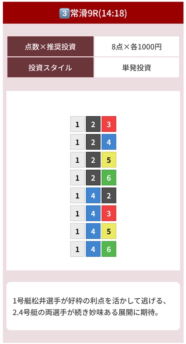 8点あっても無駄打ちがなく、当たるために必要な買い目だけが入ってる印象。