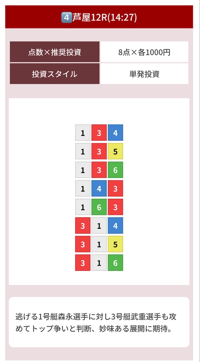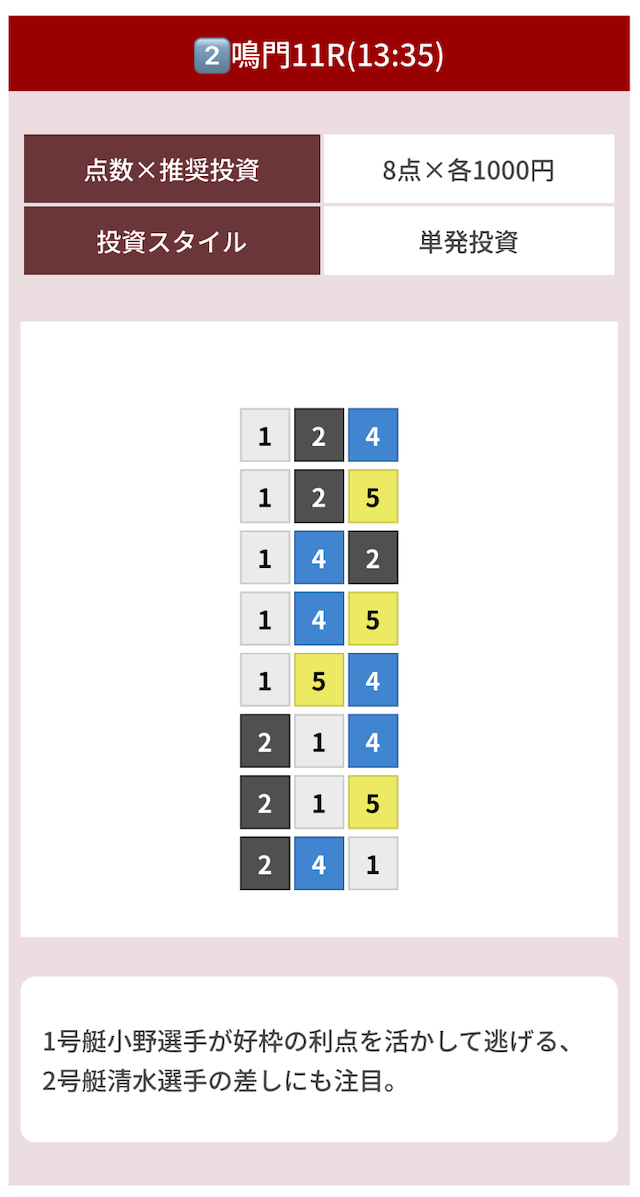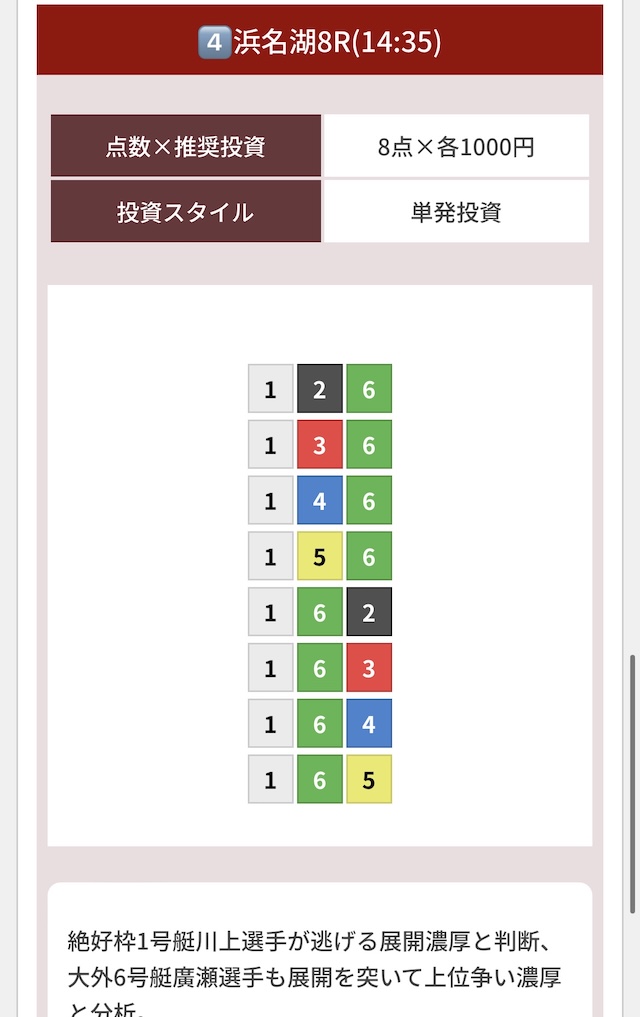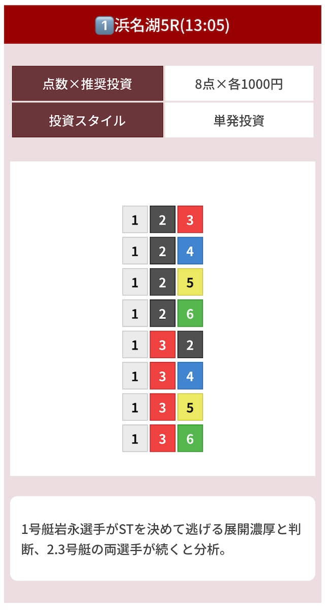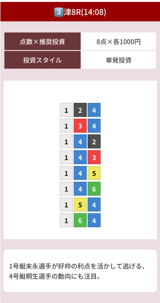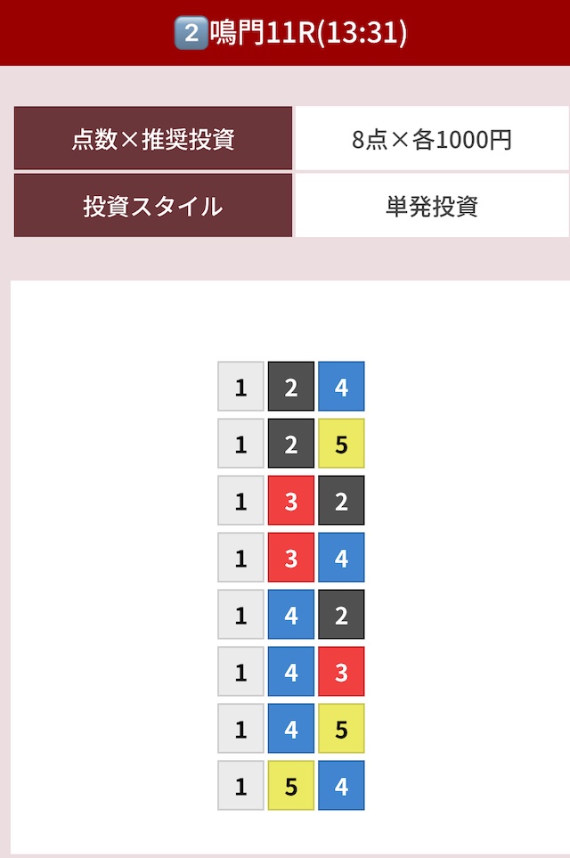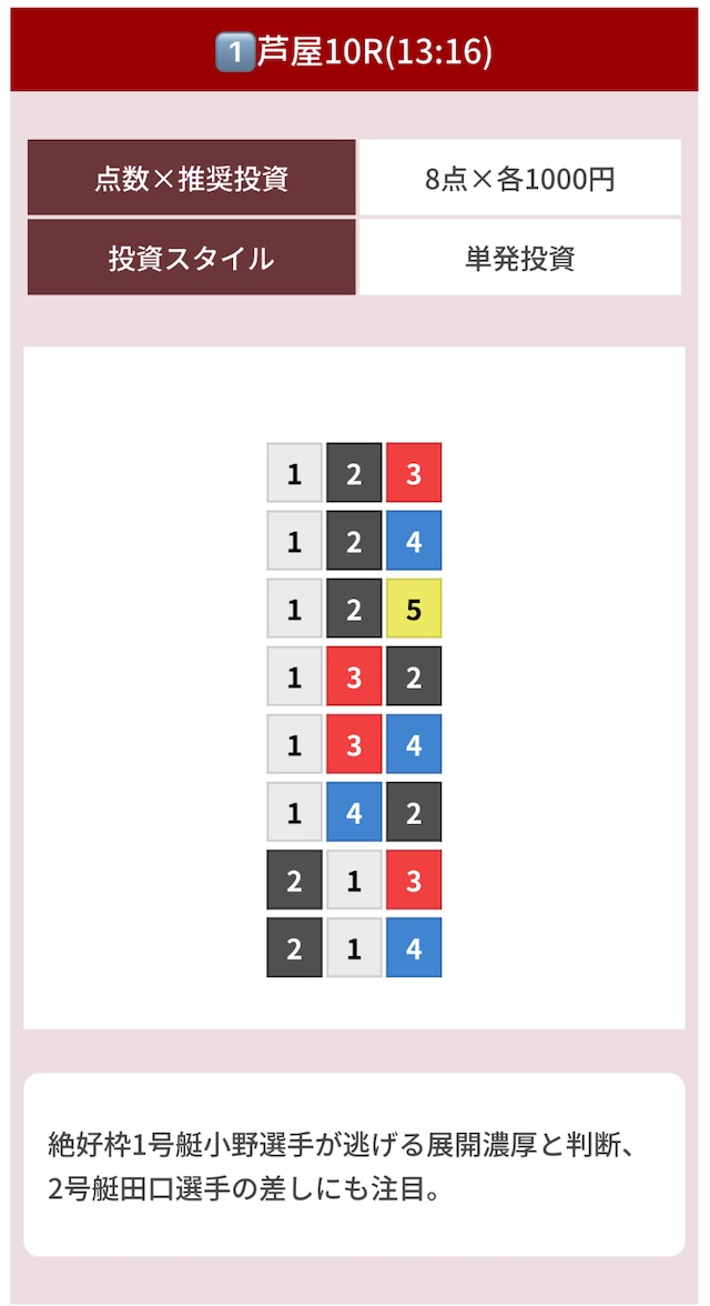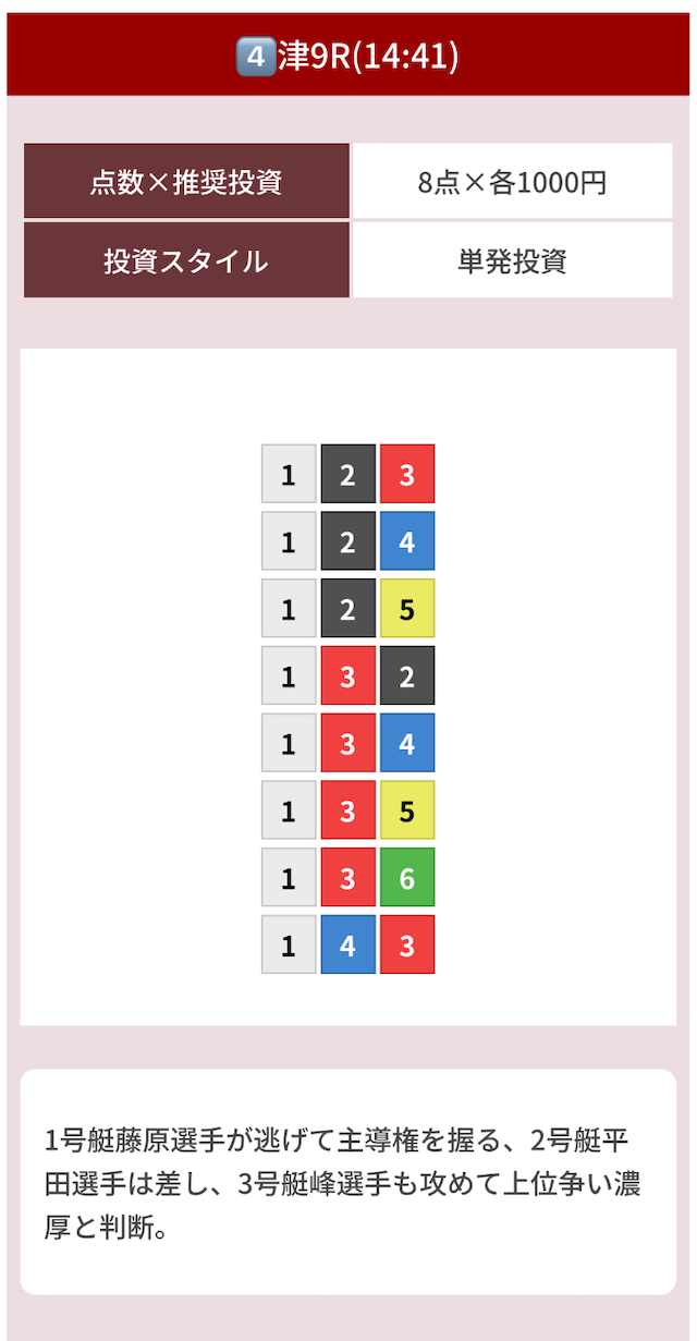 8点あっても無駄打ちがなく、当たるために必要な買い目だけが入ってる印象。