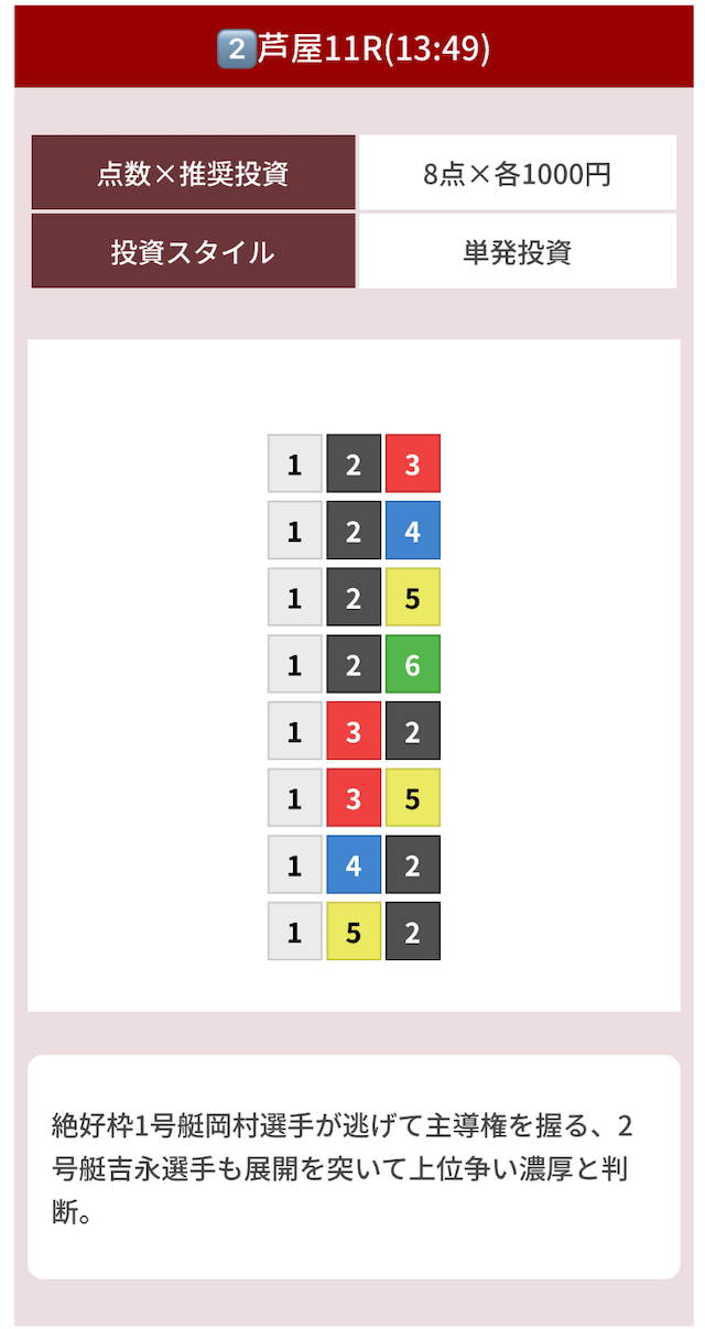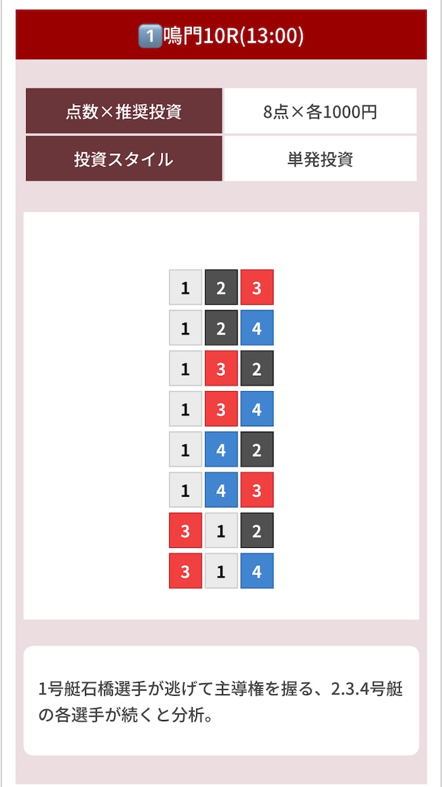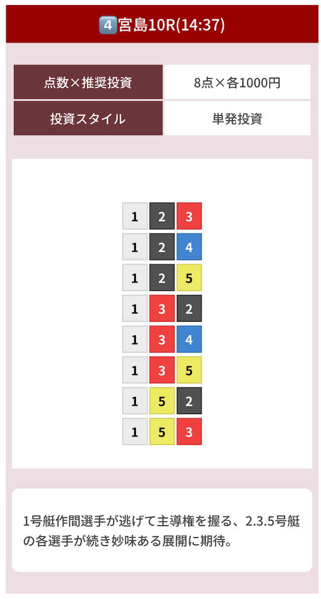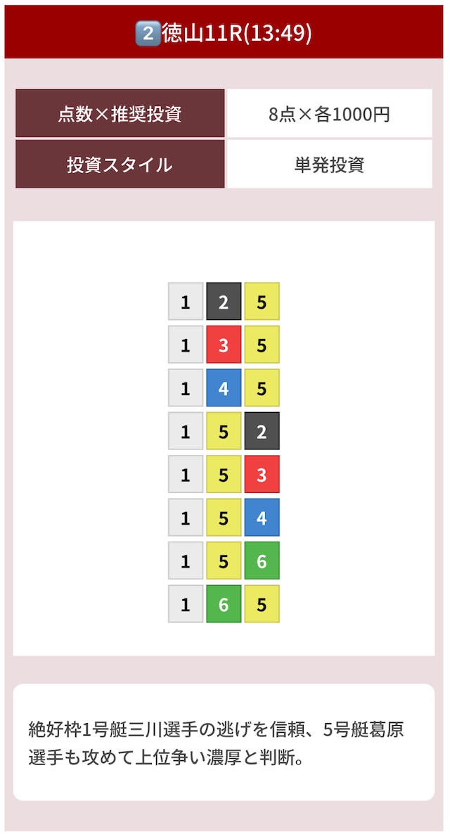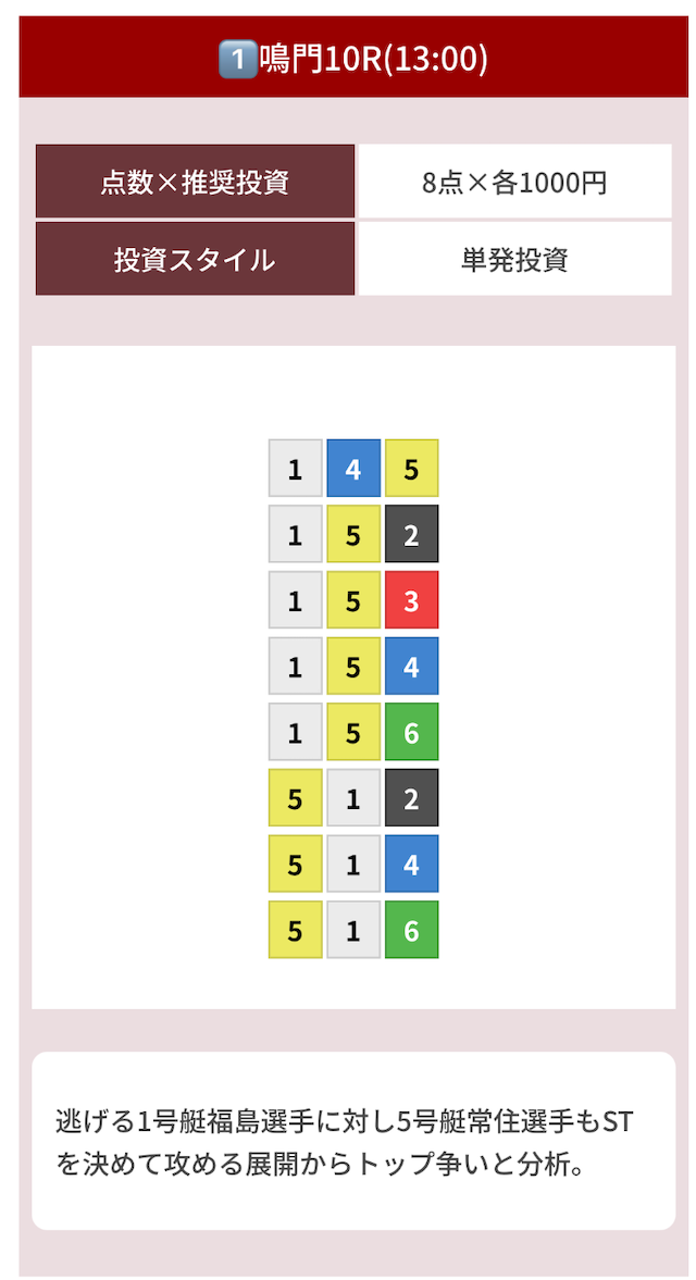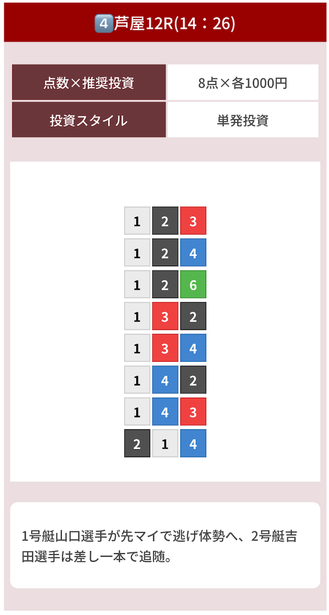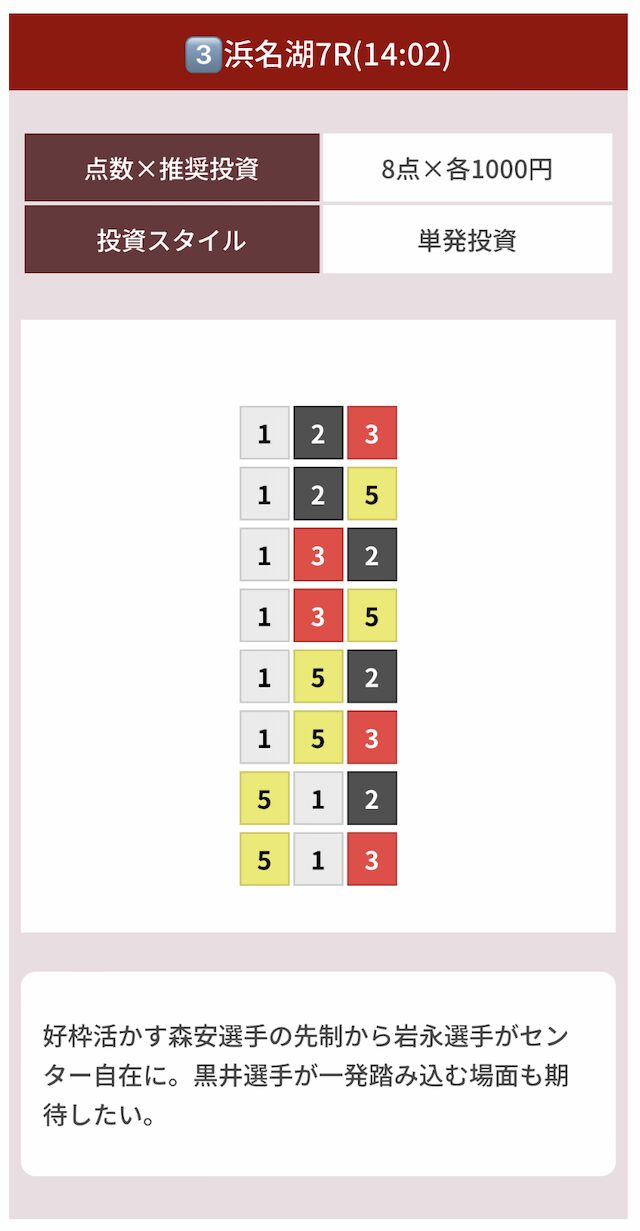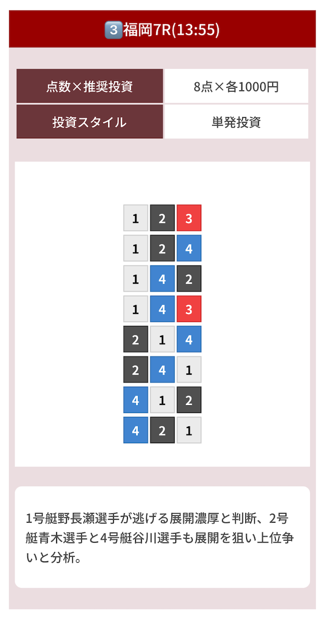 8点あっても無駄打ちがなく、当たるために必要な買い目だけが入ってる印象。
