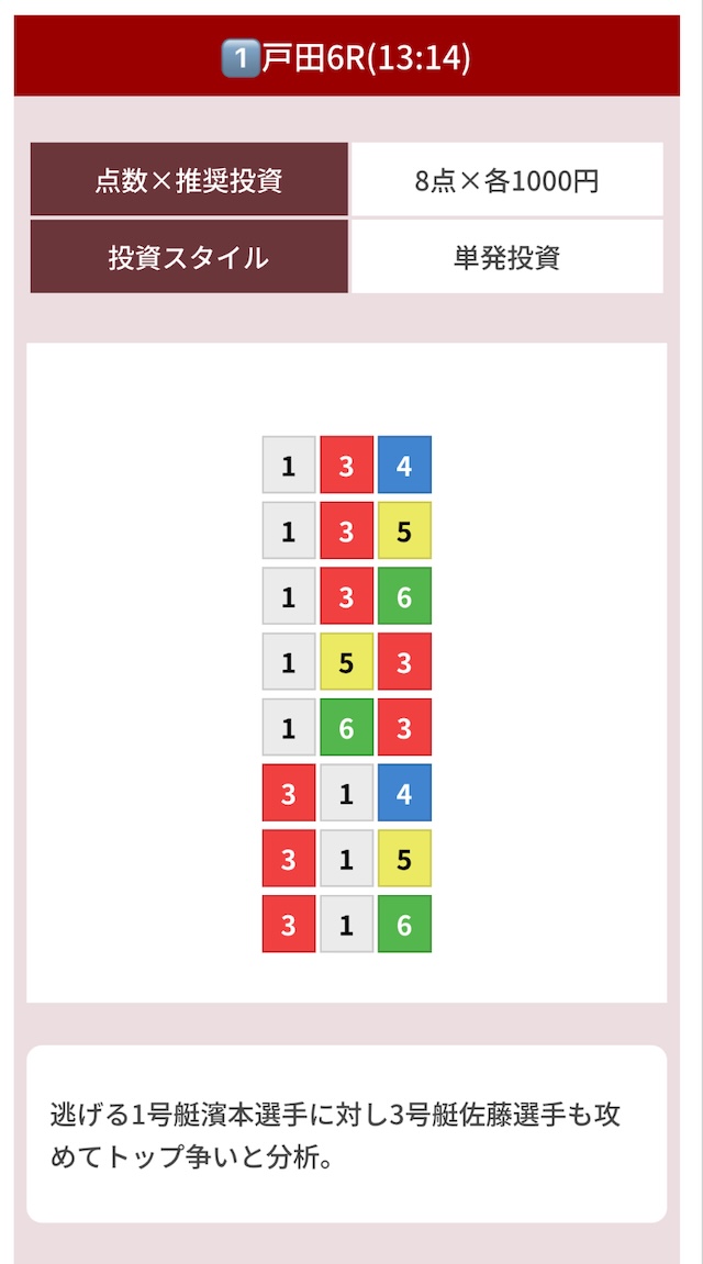 登録から予想を見るまでお金がかかることがないので、競艇予想で負け続きなら確実に押さえておきたいサイトです。