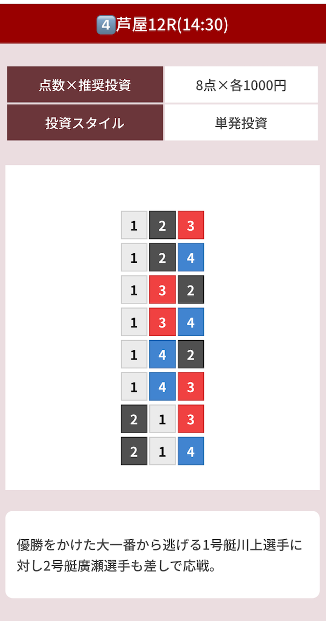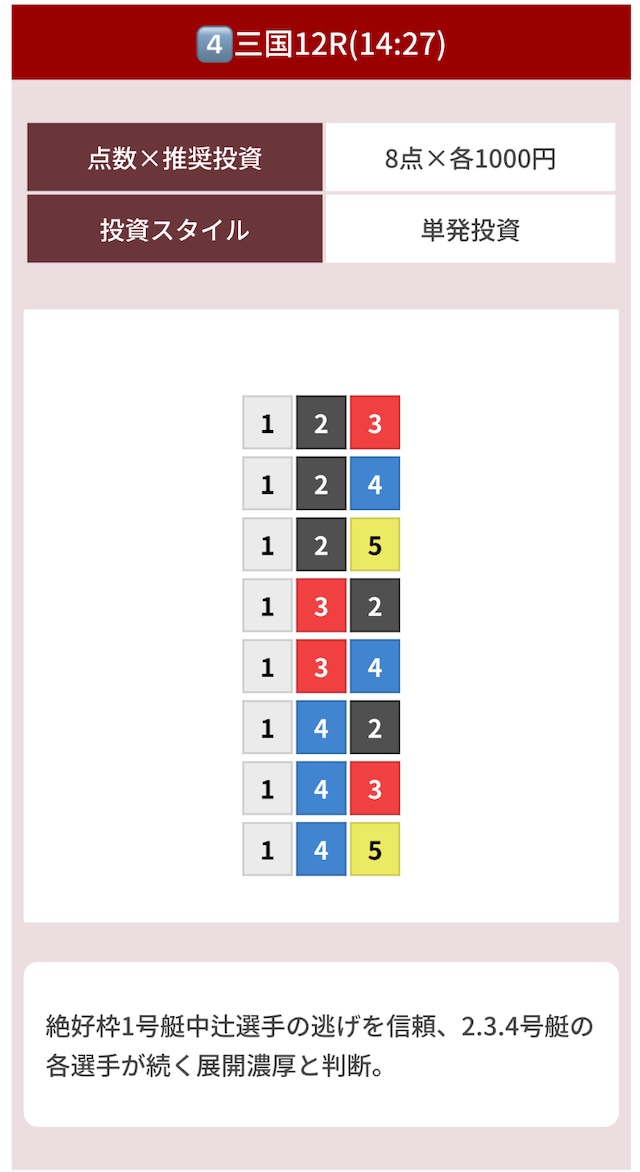 1〜4号艇で決着するのは濃厚でピックアップしてる選手に問題はないはず。
