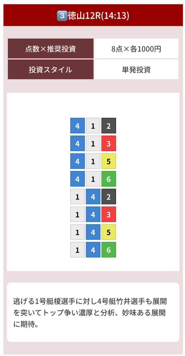 1→4だったり1→3という流れも全然ありそうなレースなので、正直本当に意味不明です。