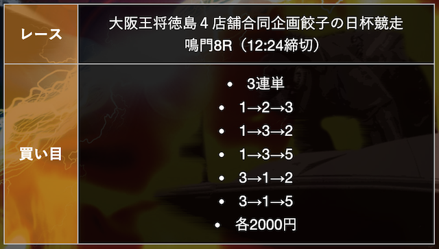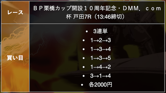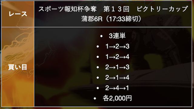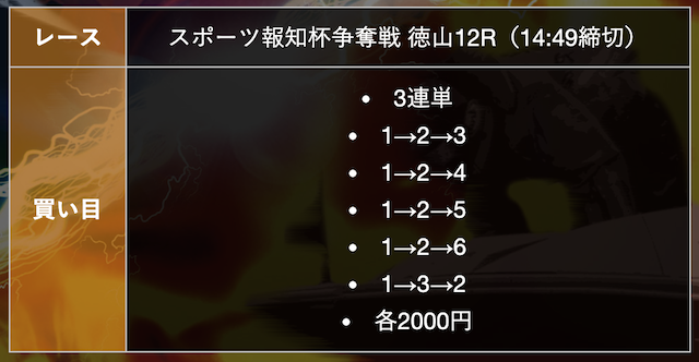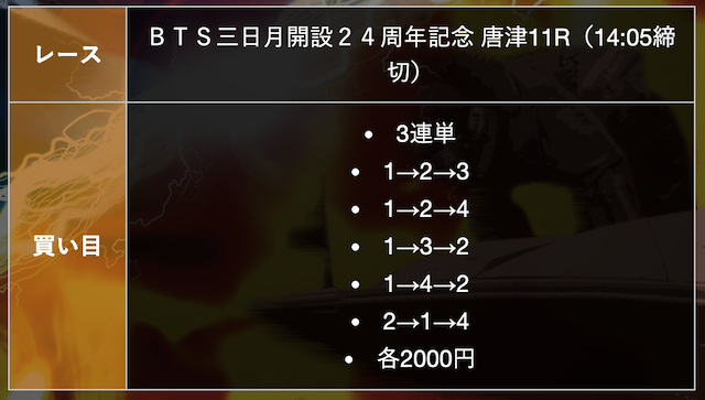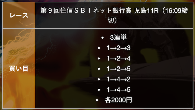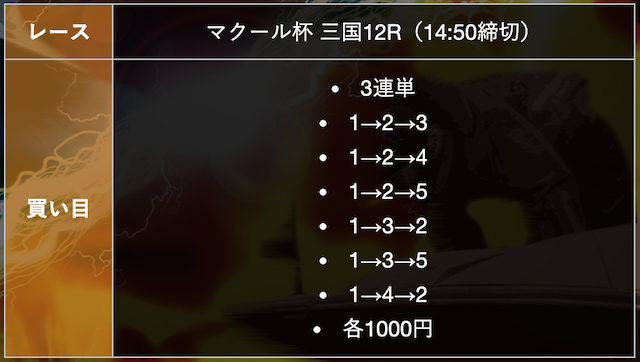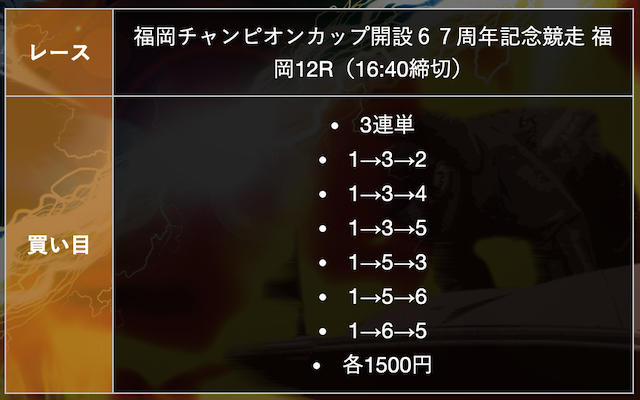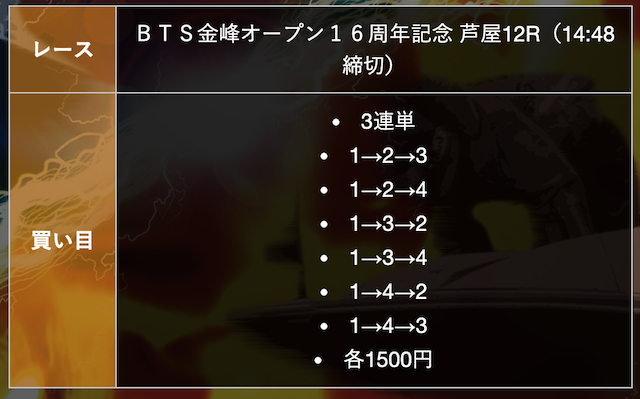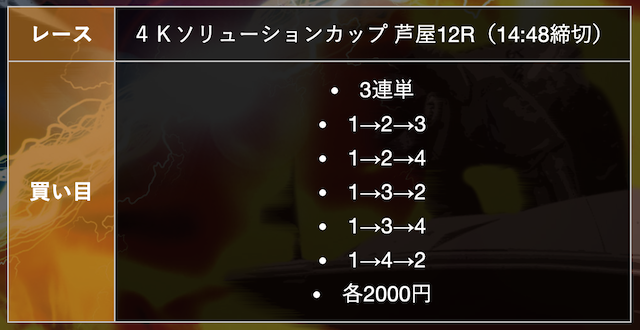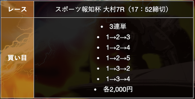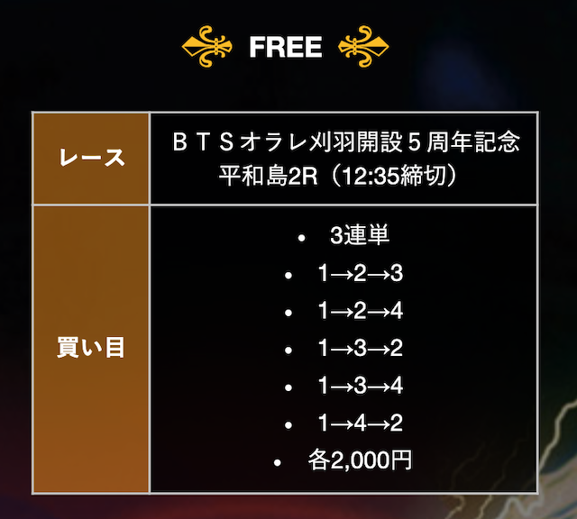 検証日にナイトボートが公開した無料予想の買い目がこちら。