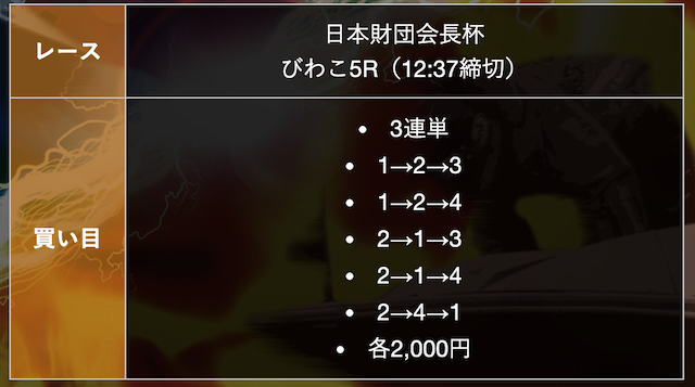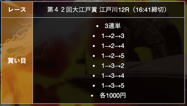 | 推奨投資金額 | 1レース5,000円~10,000円 |