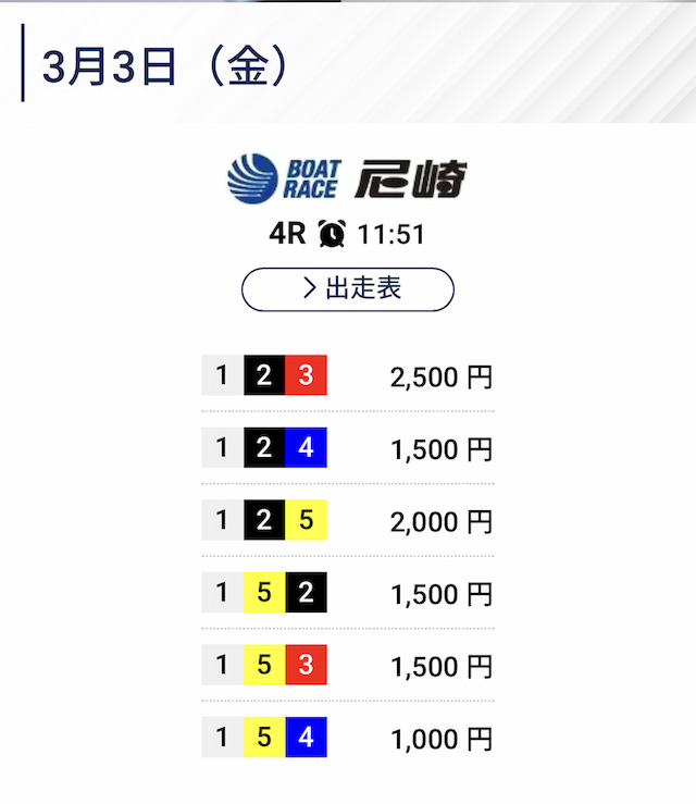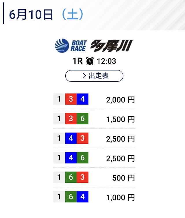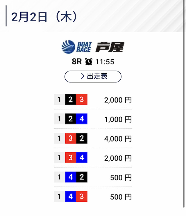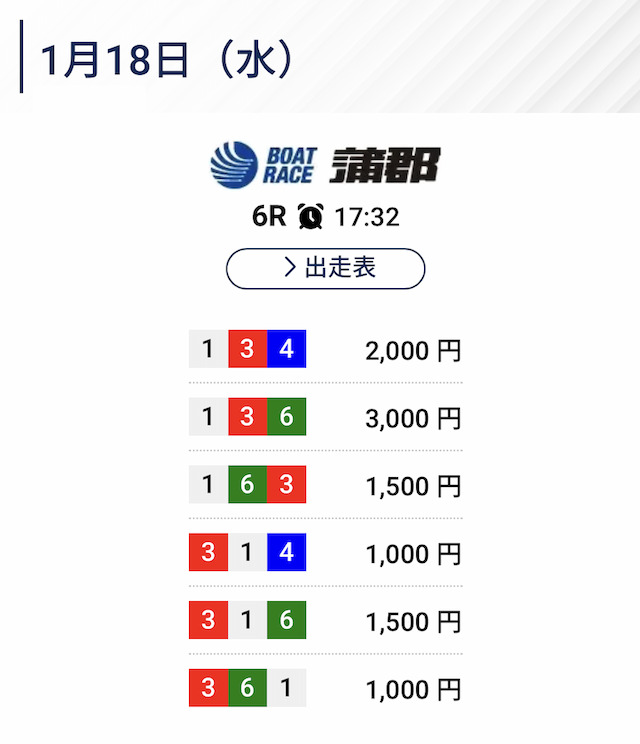 POINTポイント①.本命決着でも数万円の払い戻し!ポイント②.金額と点数調整がまさにプロ!ポイント③.2連勝で10万円超えのプラスも!- 匿名当たり前みたいに1号艇軸かと思いきや、3号艇から仕掛けて的中。ヒモ荒れまで拾ってくれてたのが地味にすごい。 ちょっと尖ってる構成だけど、変に手数が多くないのがありがたい。