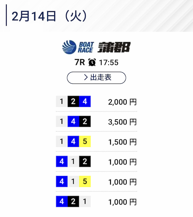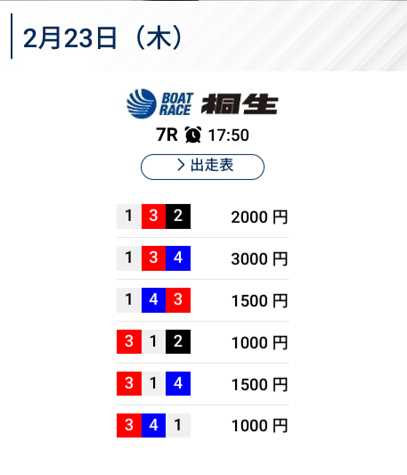 POINTポイント①.本命決着でも数万のプラスを出せる!ポイント②.一撃で帯まで見える有料予想!ポイント③.7点予想で連勝できる展開予想力!- コロ助昨日の無料が宮島で6万1200円の払い戻し出してくれて 今日11月27日は昼の無料が浜名湖で6万7200円、夜は蒲郡で31万5200円も無料情報が当ててくれた