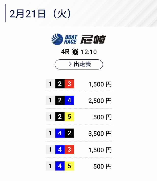 - 11月2日 丸亀6R【買い目】三連単1-3-45倍22,500円 - 10,000円= 12,500円225%