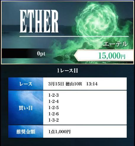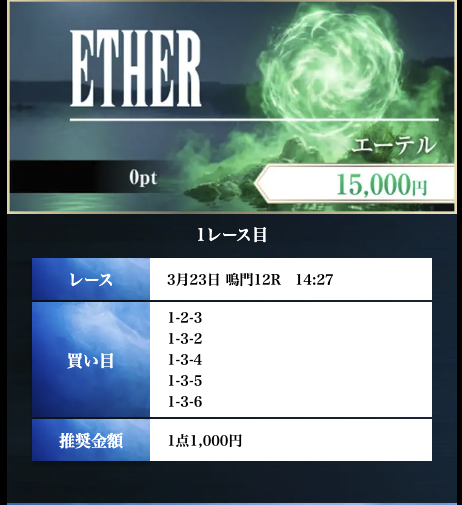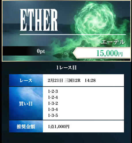 | ラグナロク | 350,000円 | 10,000円(3連単) | 400万円前後 | 1111% |