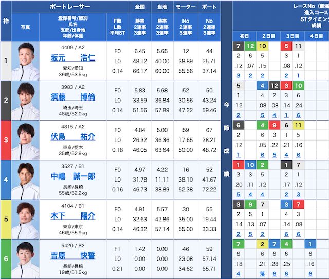 ⑤木下は外枠で舟券に絡んでいないし、⑥吉原は不調。