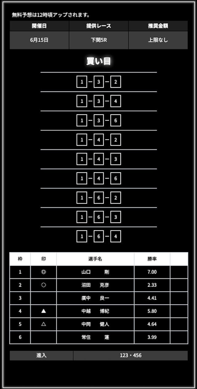 - 匿名6点構成でこれだけ仕上げてくるのはなかなかないと思う。 買い目に無駄がない感じがして、毎回「狙いどころが見えてるな」と思わされる。無理に荒らさず、でも避けるべき穴はちゃんと入ってる。