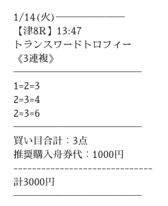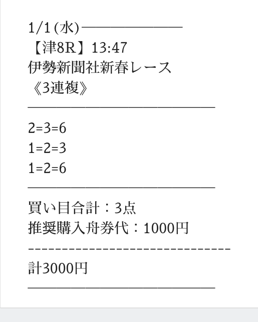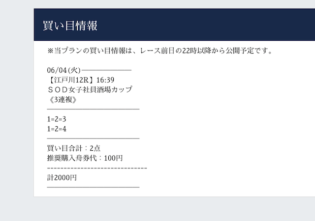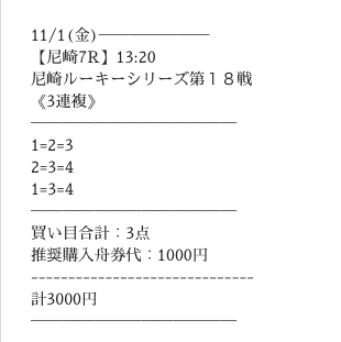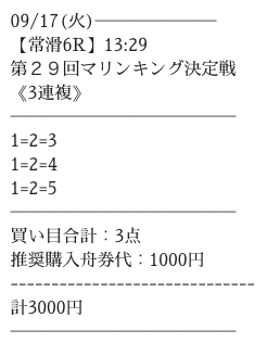 実際に提供された買い目はこちら。