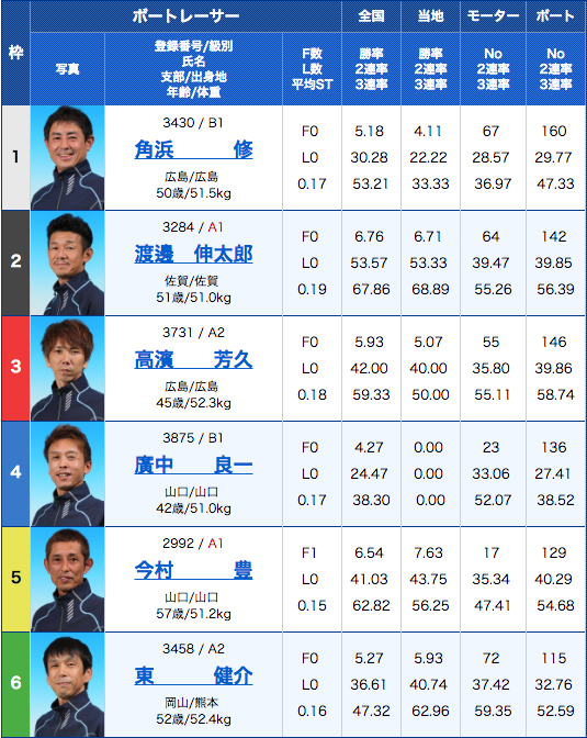4. 全国勝率:2号艇