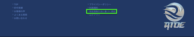 実際に競艇ライドの最下部には、注意書きと共に特商法が記載されているページにアクセスできるリンクがありました。
