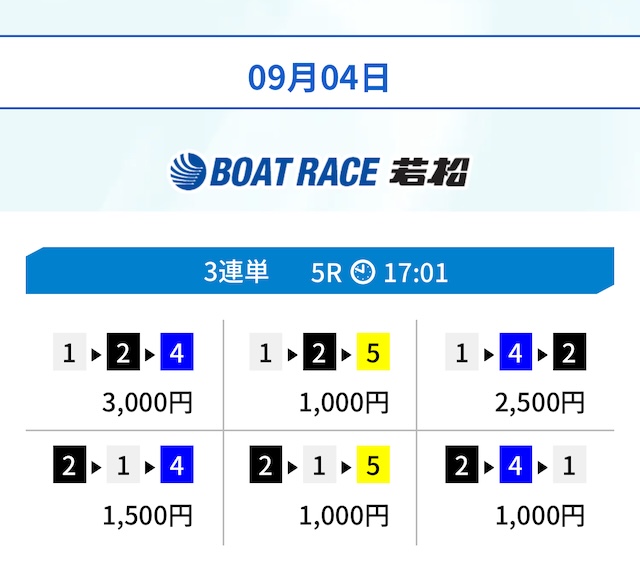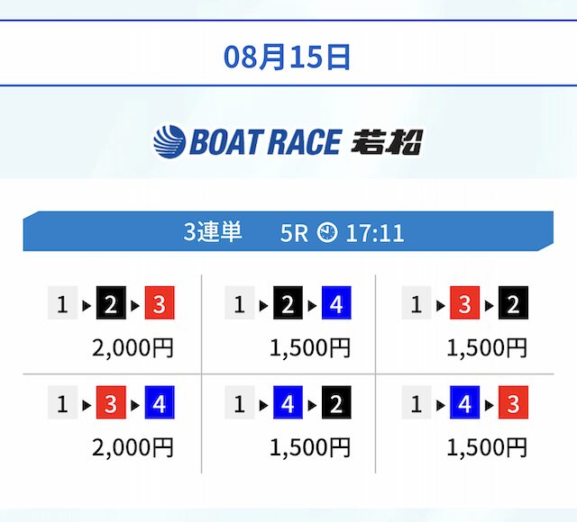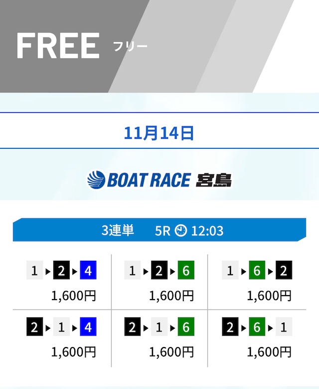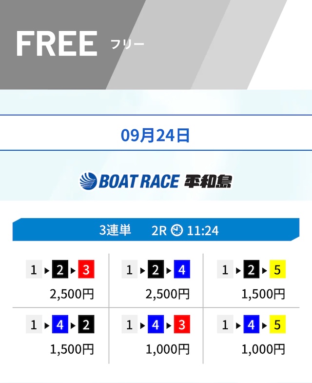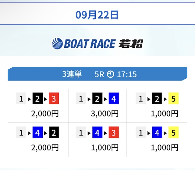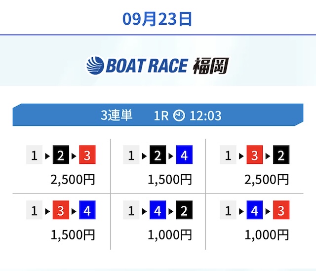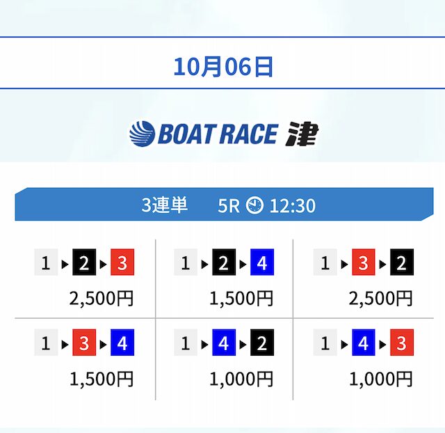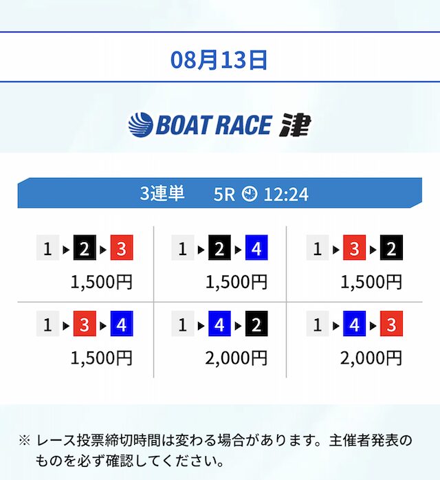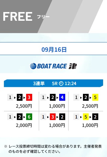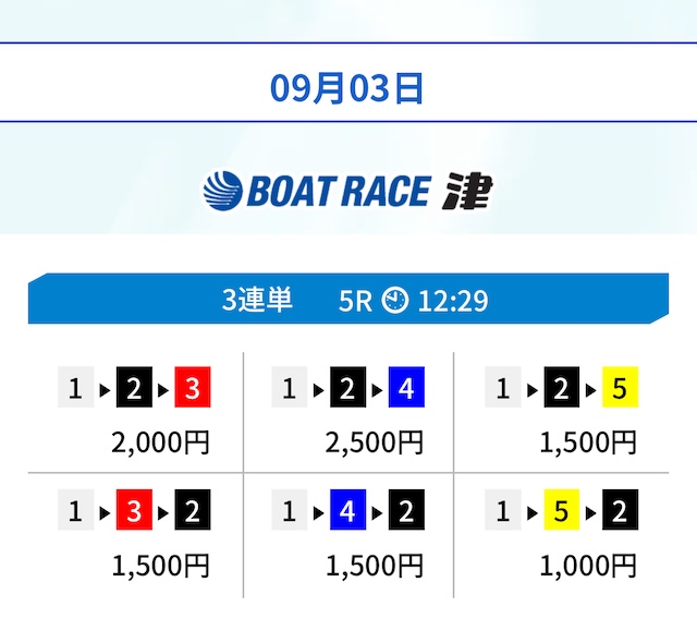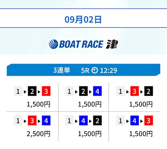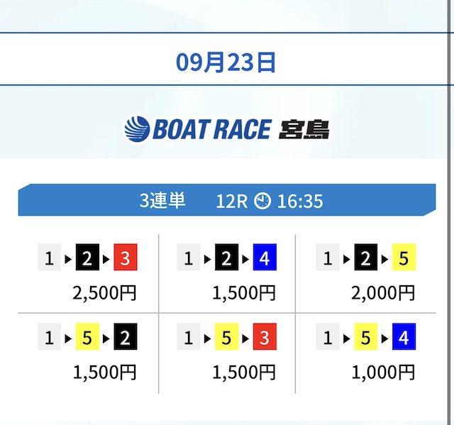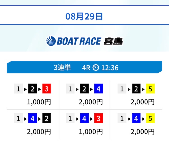 ヒモも1レース目とほぼ同じく6号艇まで含めています。