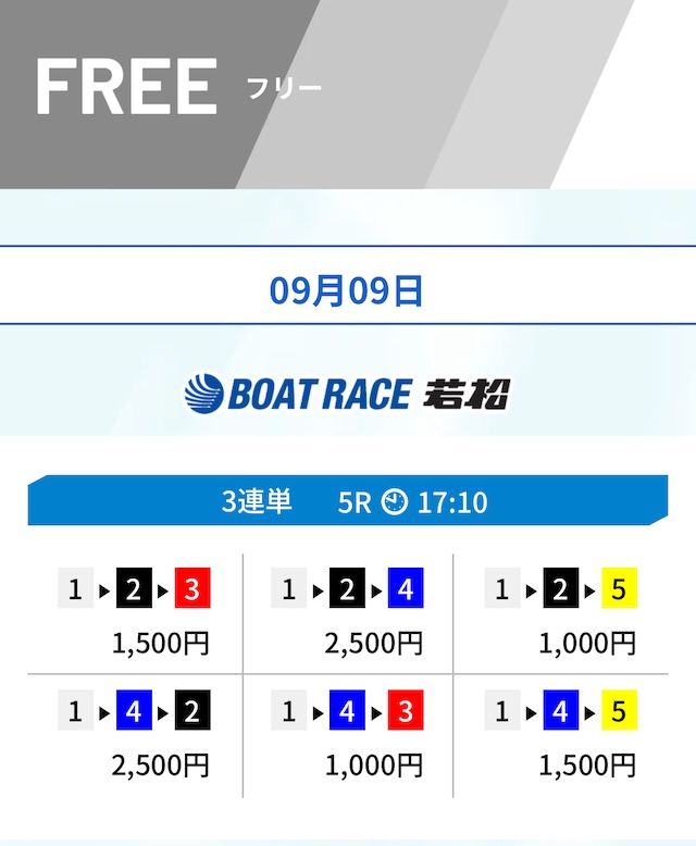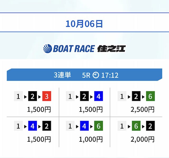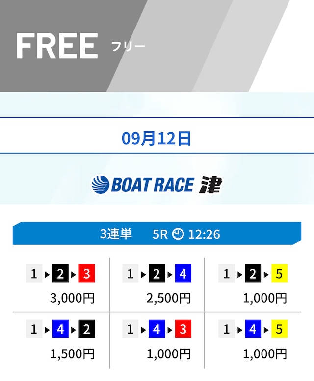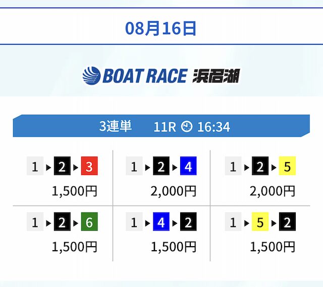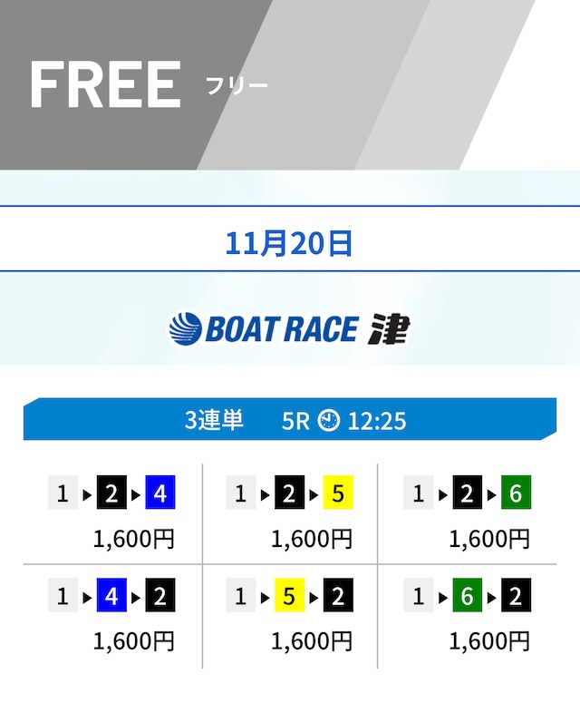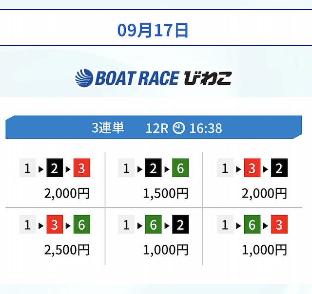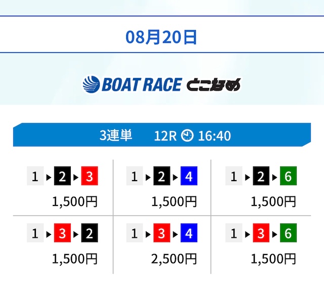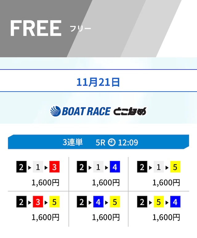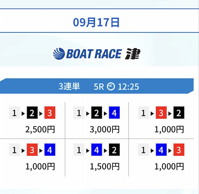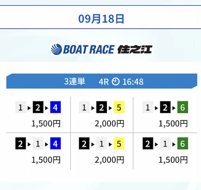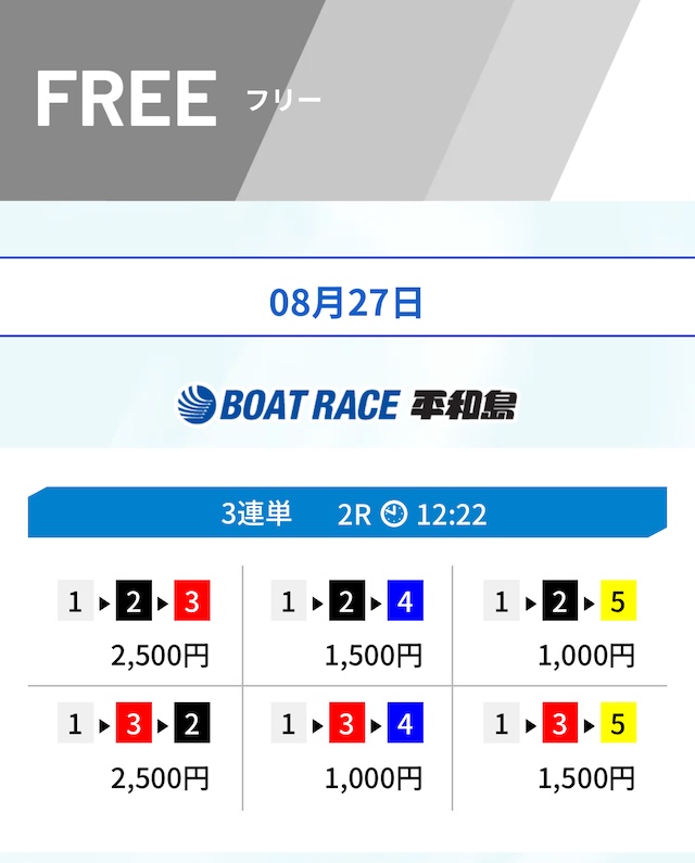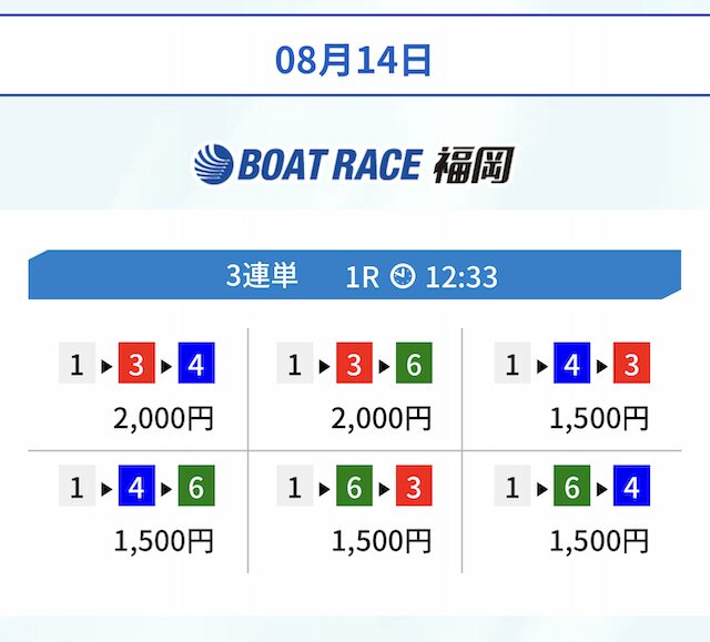 ヒモも1レース目とほぼ同じく6号艇まで含めています。