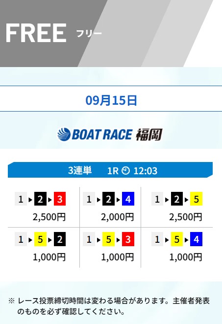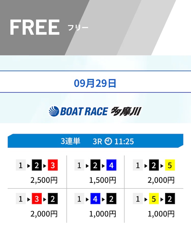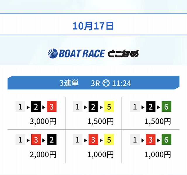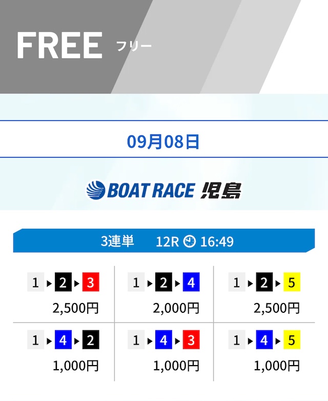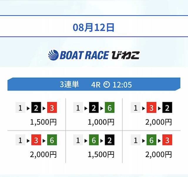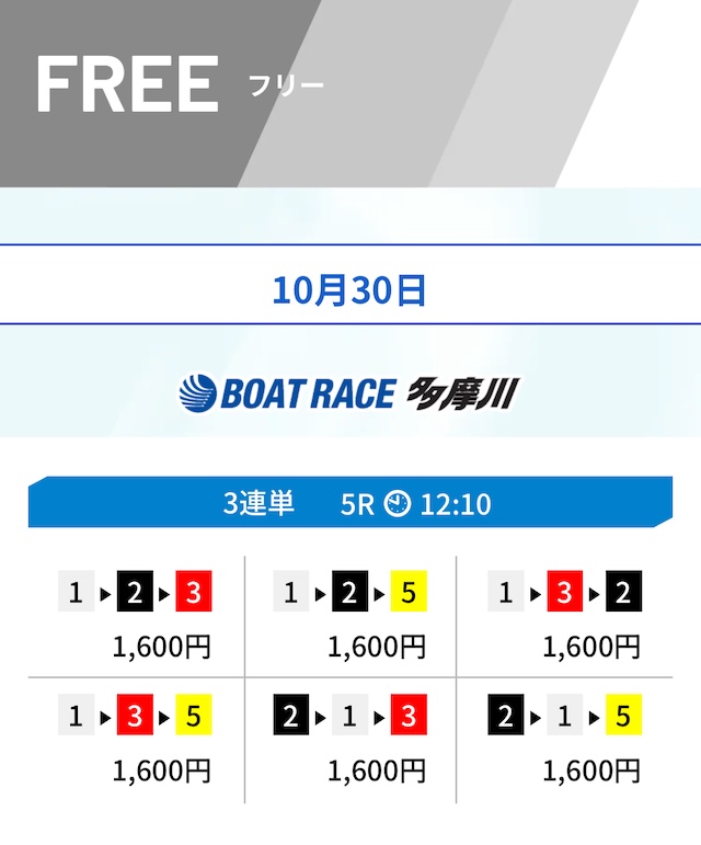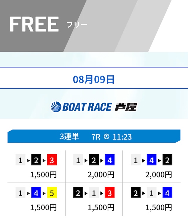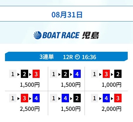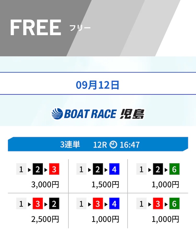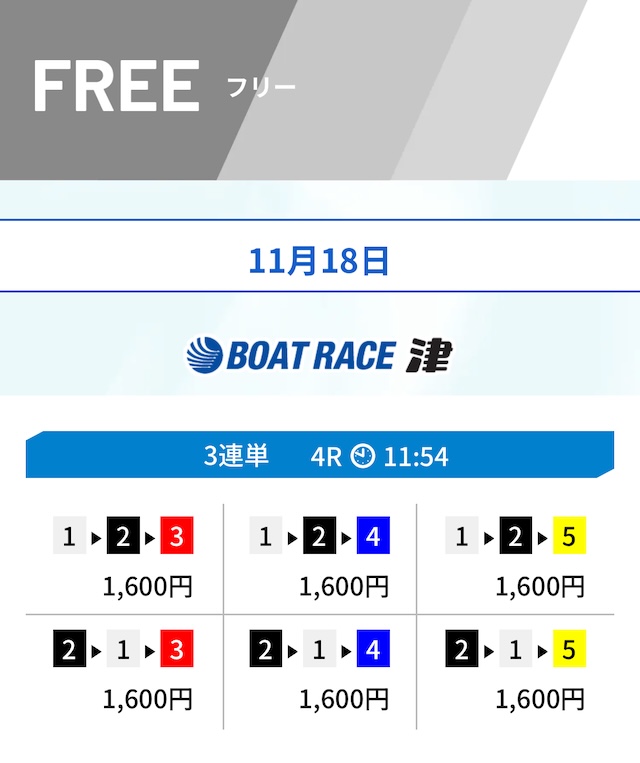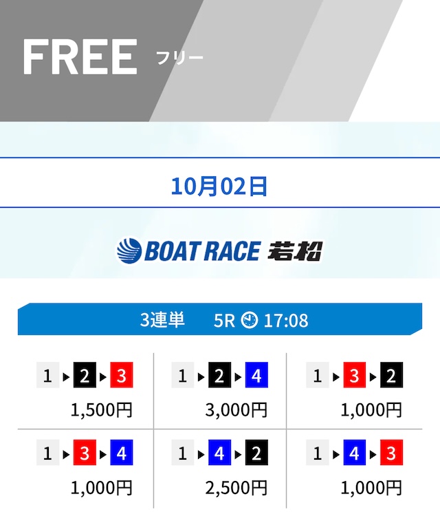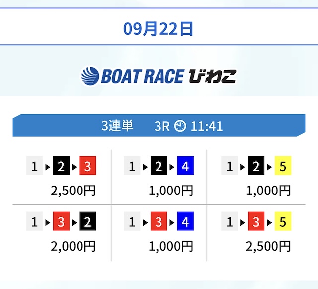 ヒモも1レース目とほぼ同じく6号艇まで含めています。