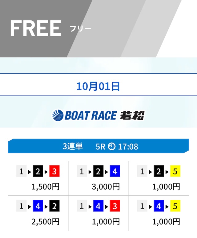初っ端はずれたけどそこから5連勝!一撃よりこういう感じで当たるサイトのほうが使いやすいし安心!