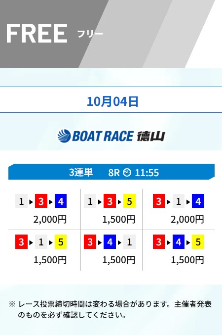 × | 有料プランを購入したが予想買い目が 時間になっても送られてこない。 そのあとサイトにアクセスできなくなった。 |