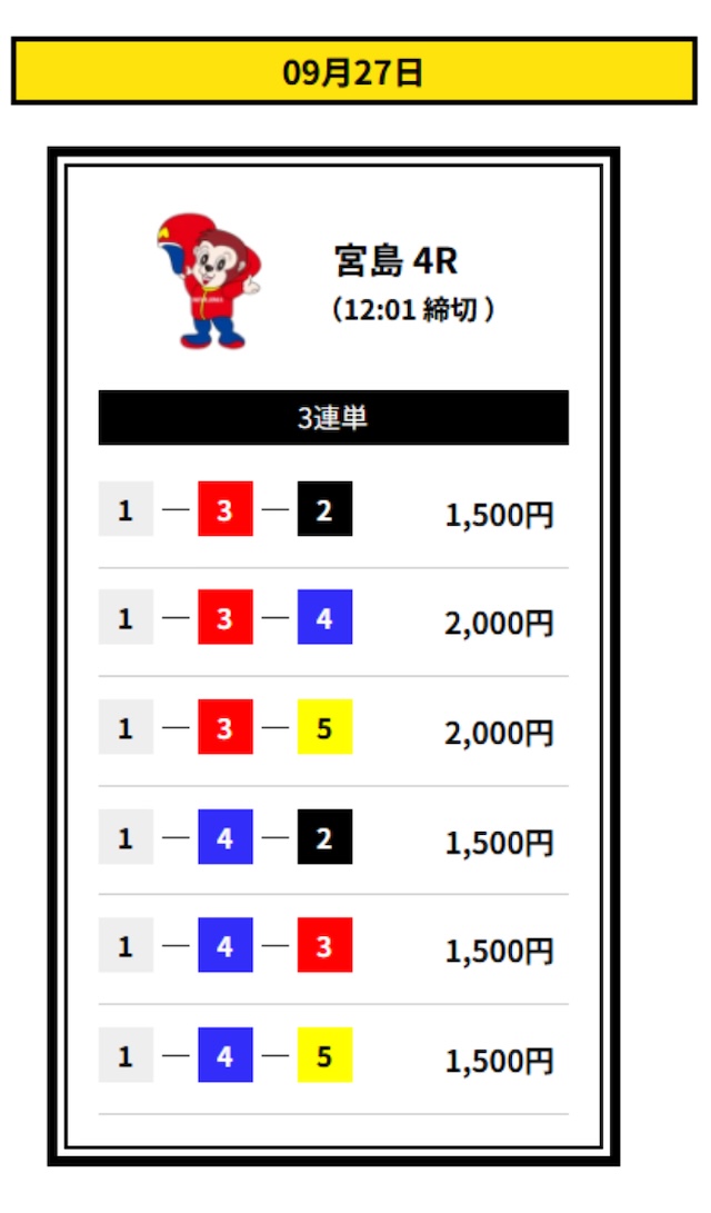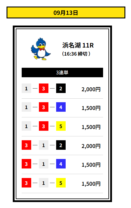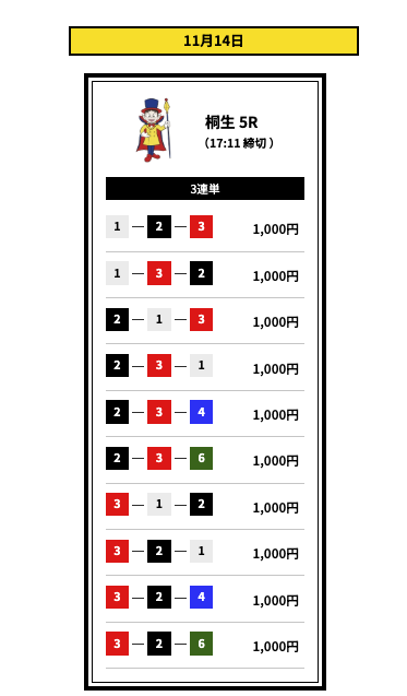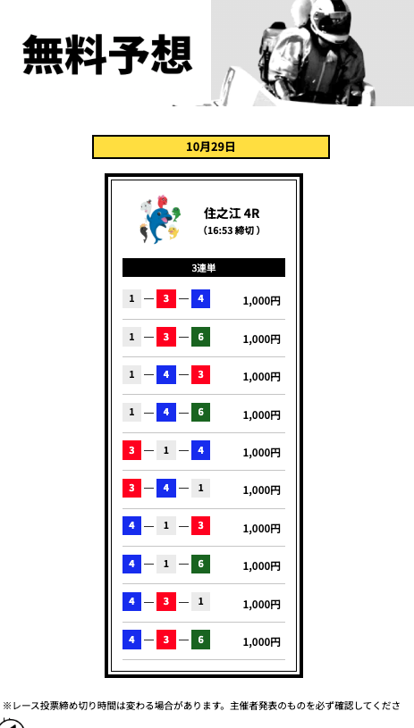 無料予想が当たったので、様子を見て使っている。有料との明確な差はまだ見えていないけど、少なくとも無料でこの精度なら信頼していい気がする。直前公開なのは多少面倒だけど、回収できてるから許容範囲。