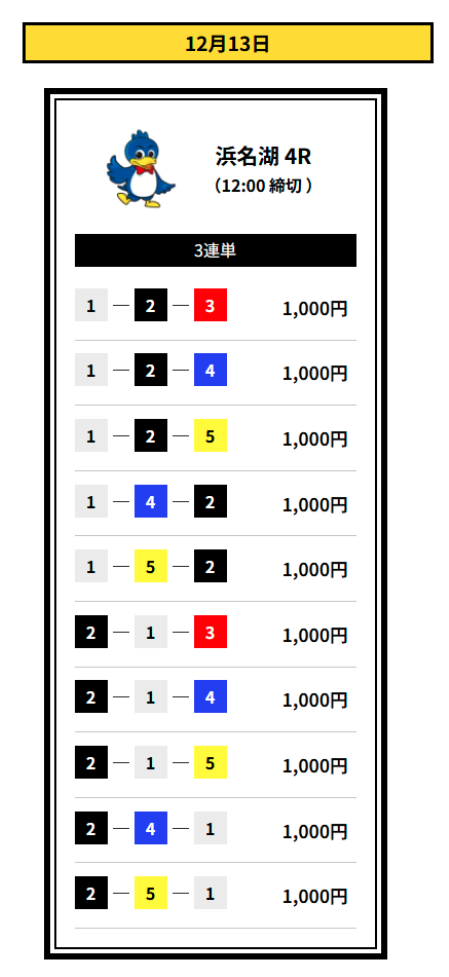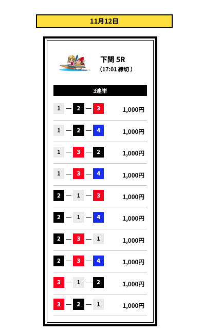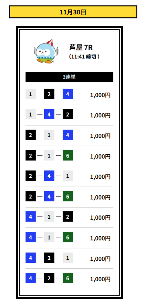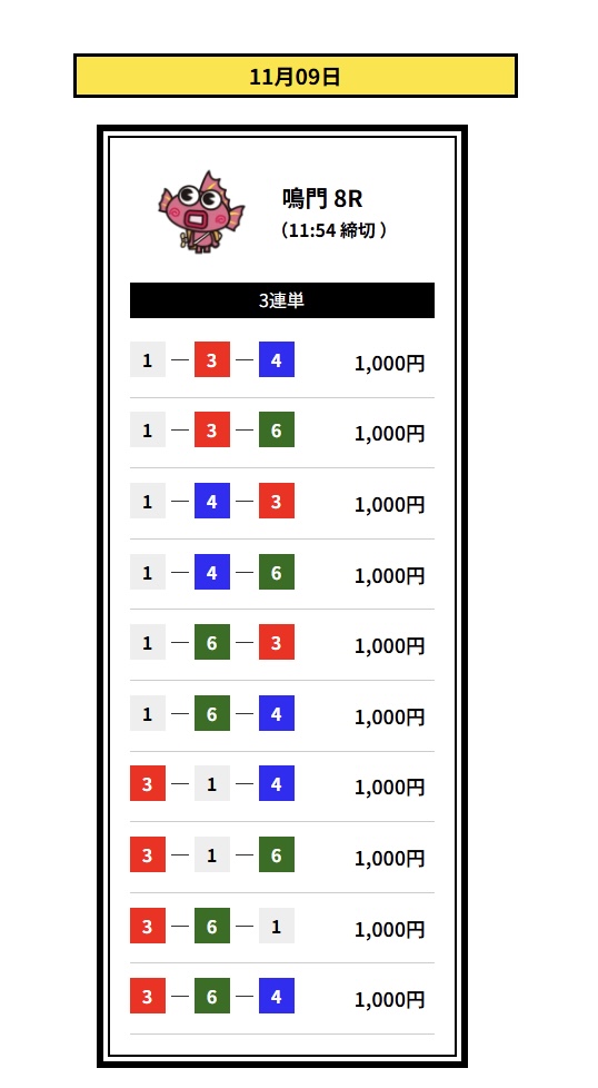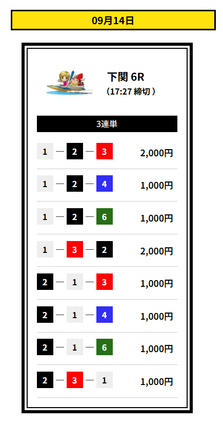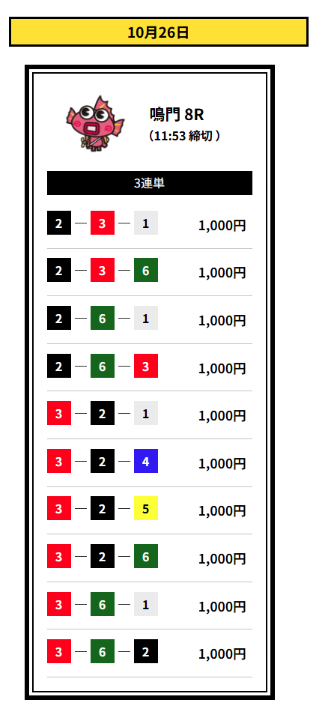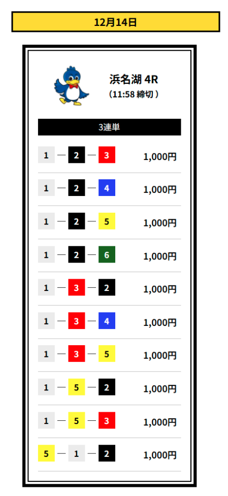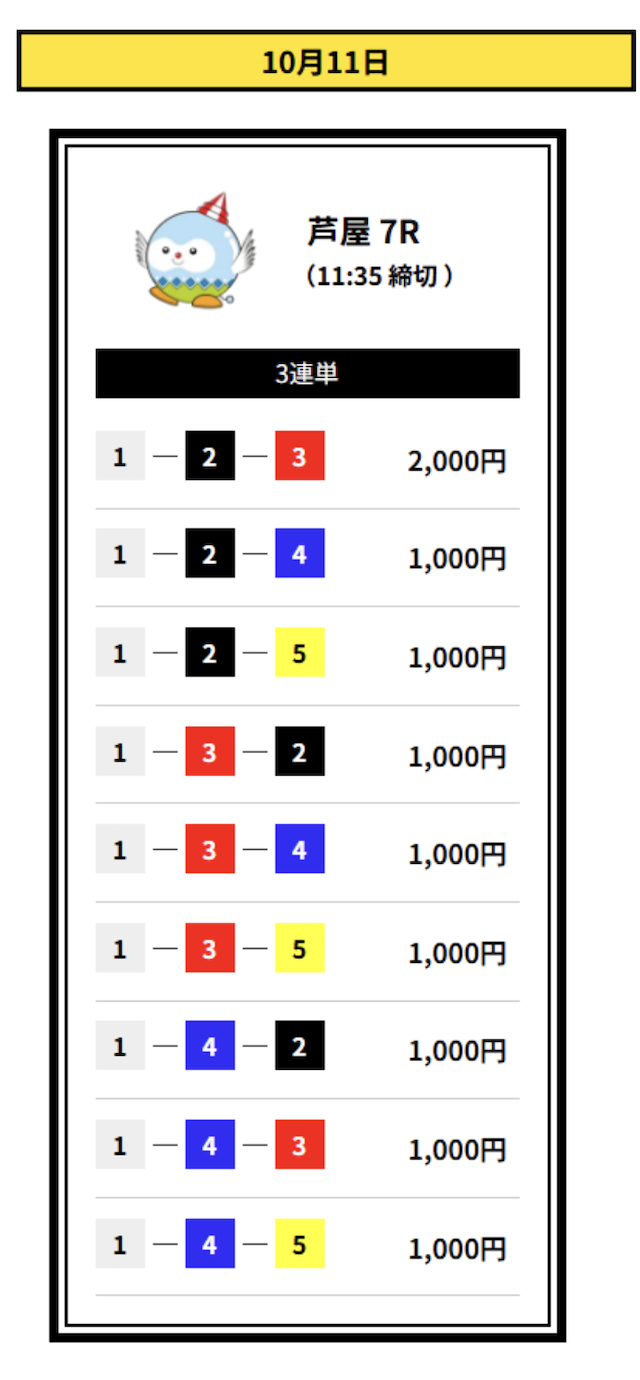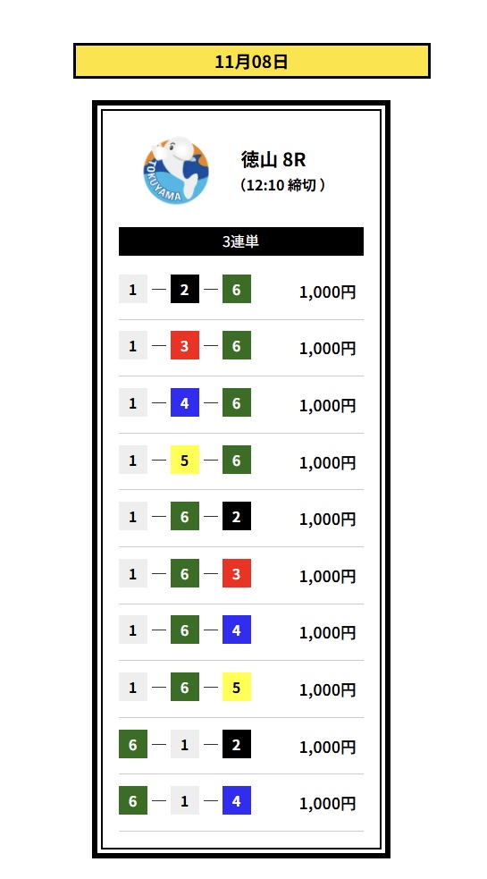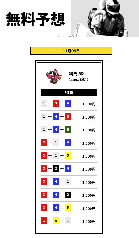 最初は1号艇絡みの堅い買い目ばかりかと思っていたが、意外とヒモ荒れや展開読みも鋭くて、印象が変わった。6号艇が突っ込んできたレースを当てられたのは正直感動もの。点数はそこそこあるけど、そのぶん外しづらいから、長く付き合えそう。