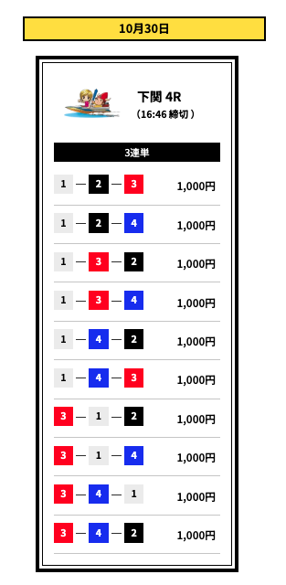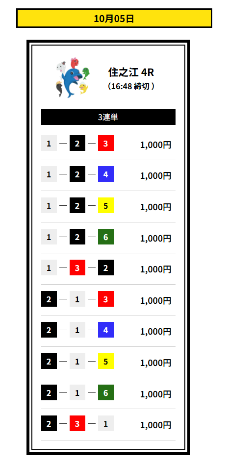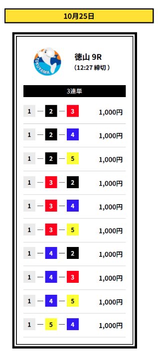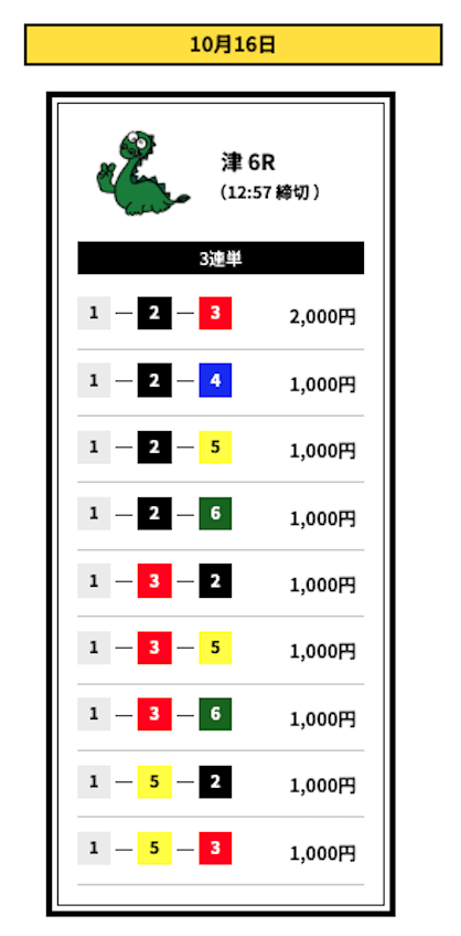 ここまで払戻金が増えたのは買い目の点数を6点まで抑え、1点に厚く張れたからでしょう。