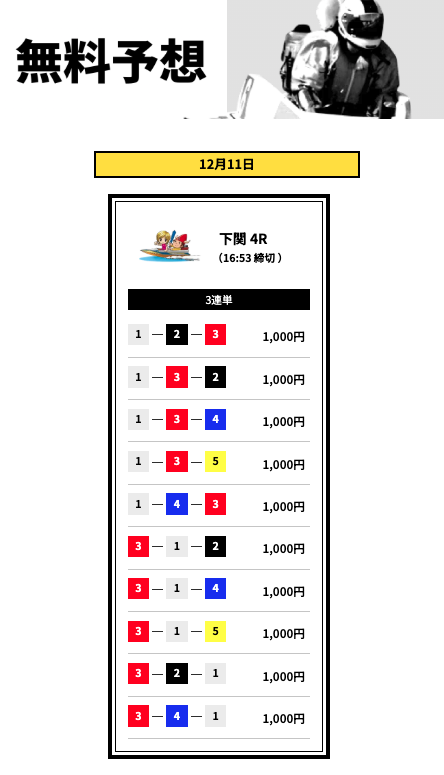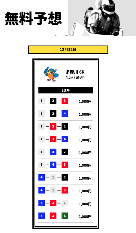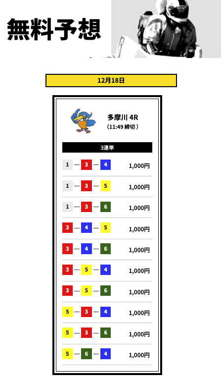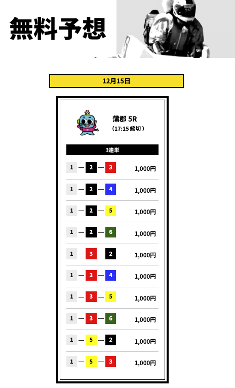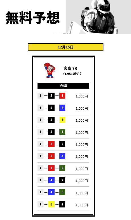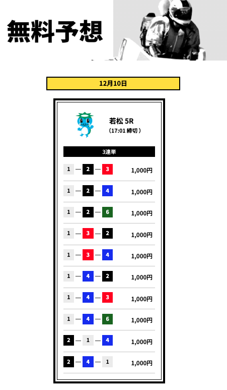 もし、そこまでの資金を自腹で賭けられないという方は、無料予想で稼いだ払戻金を使ってみて下さい。