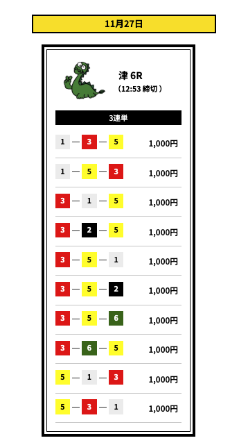 予想が変に荒れてないのがいい。高配当狙いの一発型じゃなくて、ちゃんと的中の可能性と回収率のバランスを取ってる。無理せずにコツコツ、というスタイルにはかなり向いてると思う。