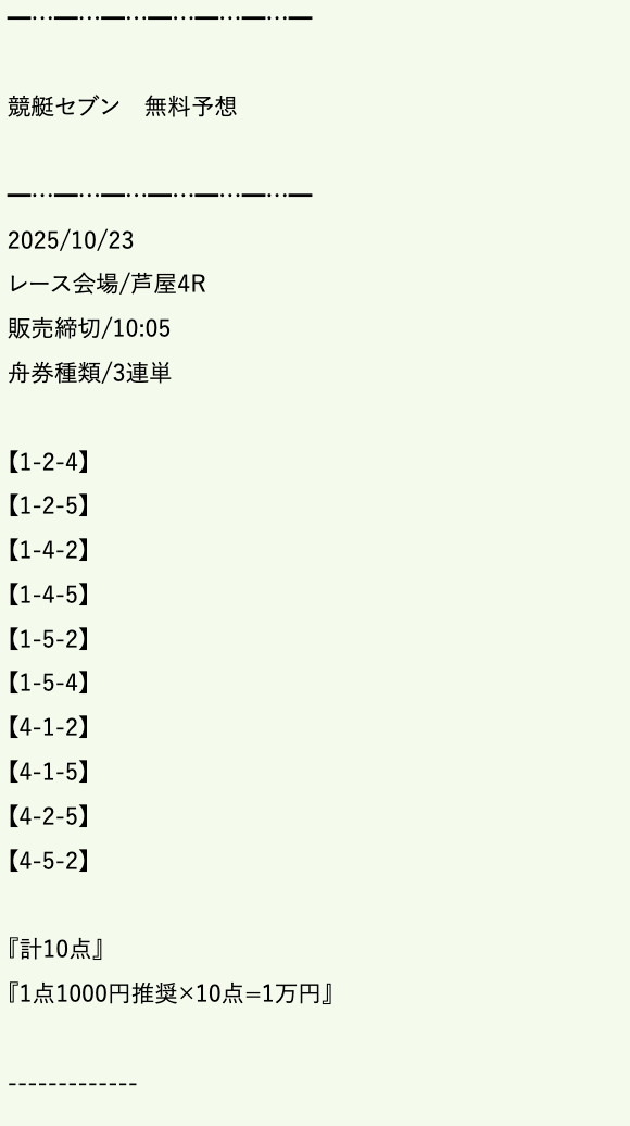 万舟の買い目もいくつか含まれていること、この予想以前の実績からして穴狙いが得意なこともわかっているので、むしろ外れて全損にならない買い目を提供しているともとらえることができそうです。