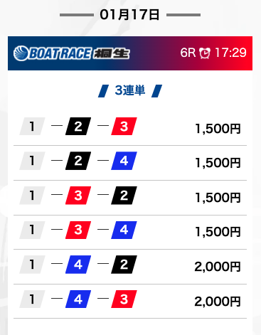 | コスパ | 4.0 | 舟券代に対しての払戻が 高いか低いか |