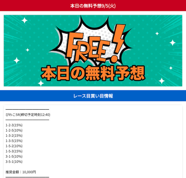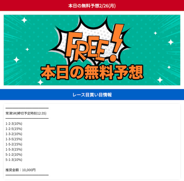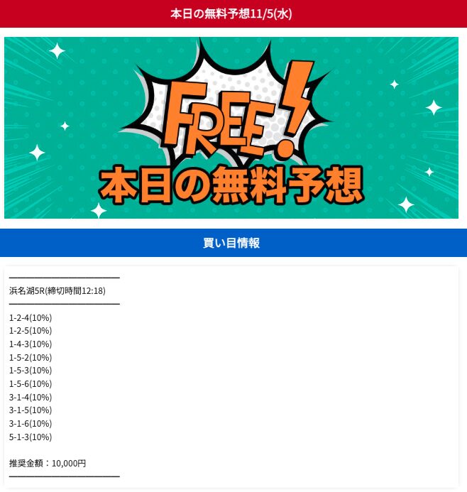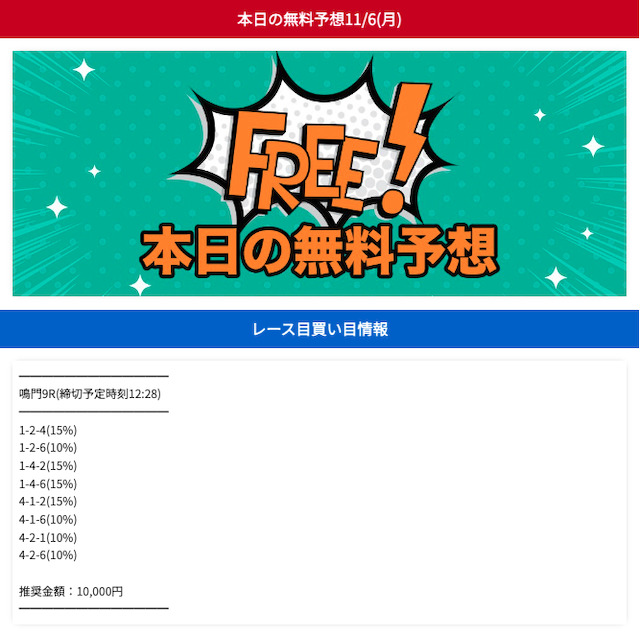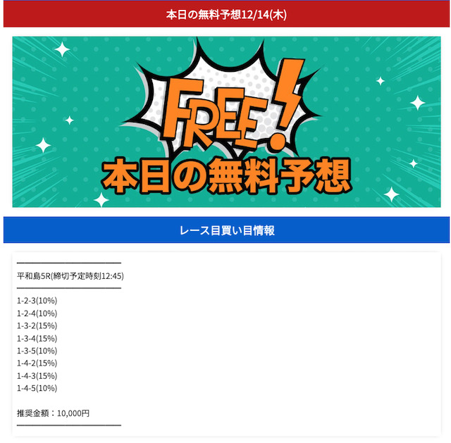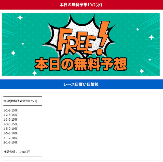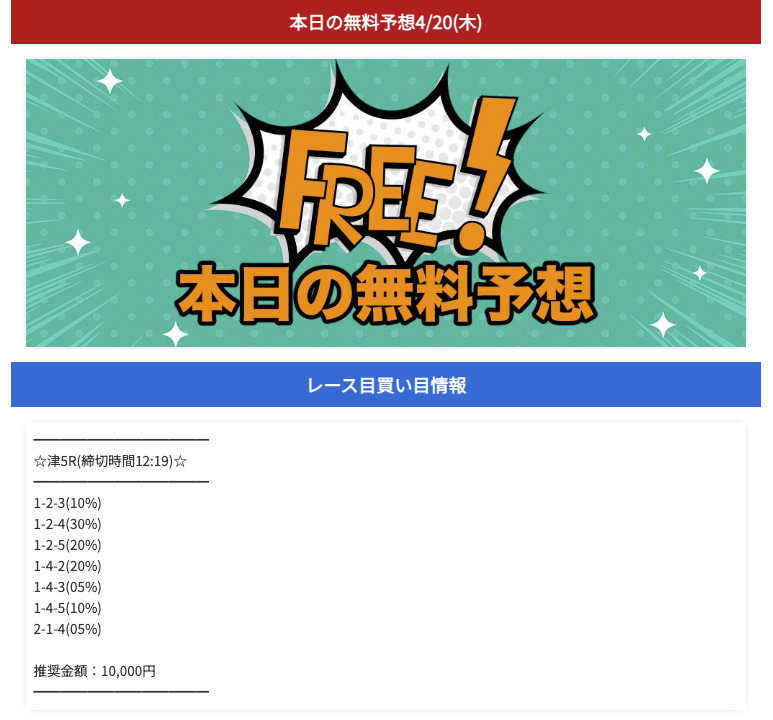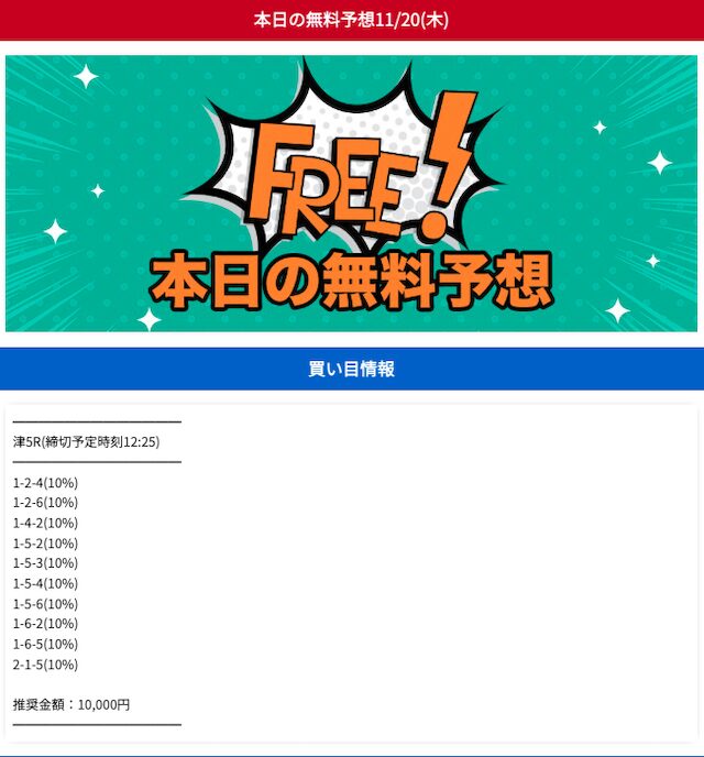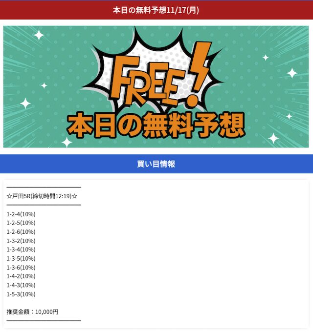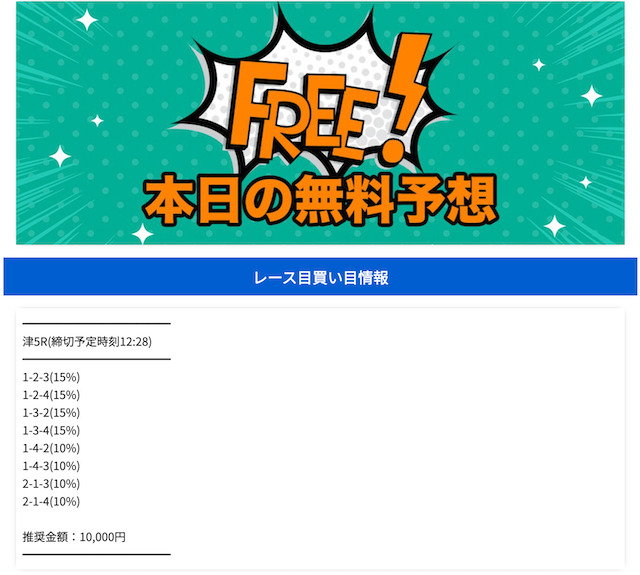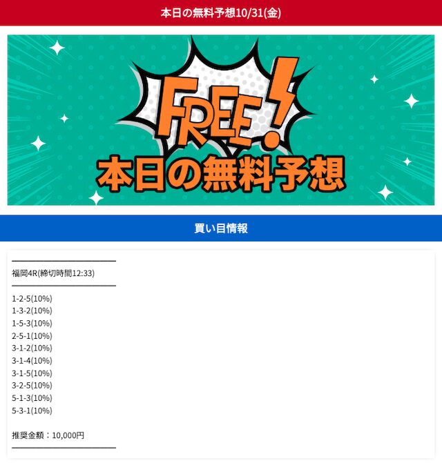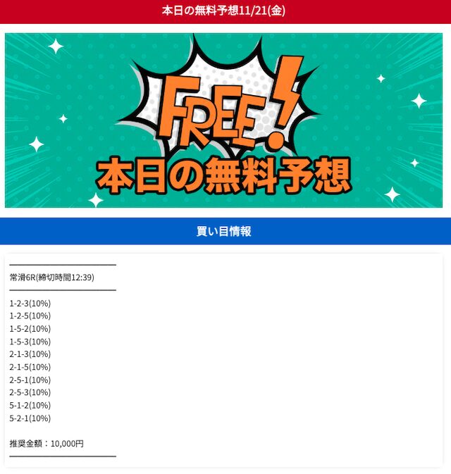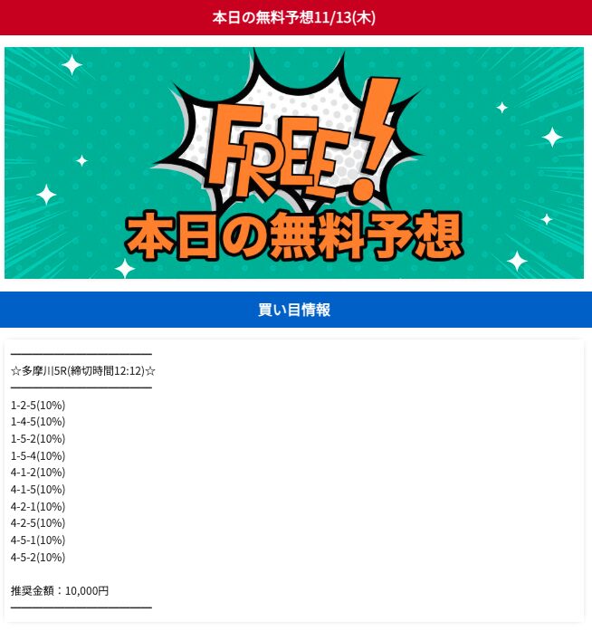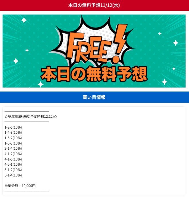 単発予想で10万以上の払い戻しをポンポン出してくれる。