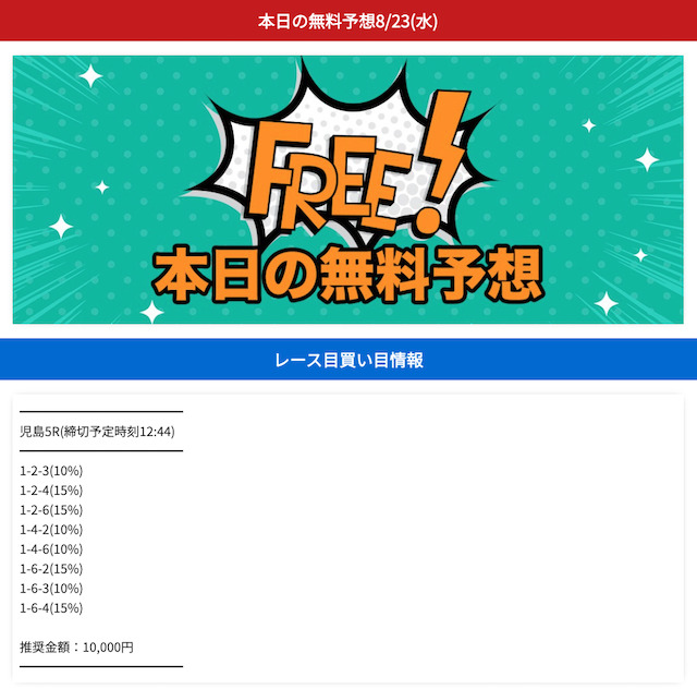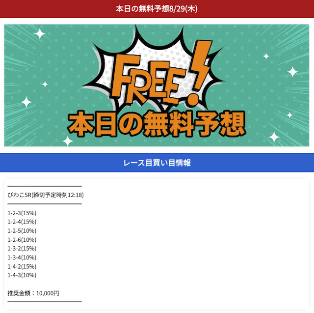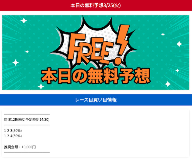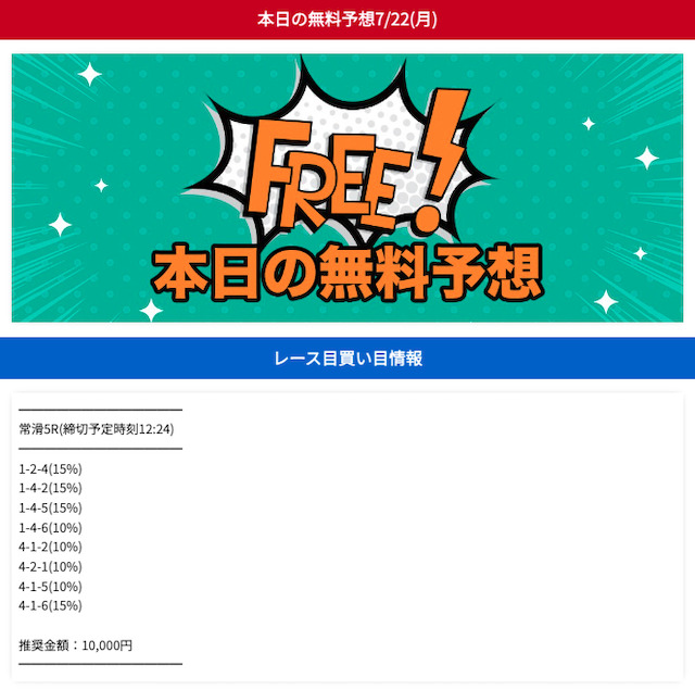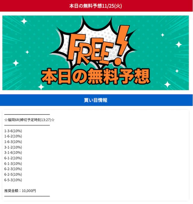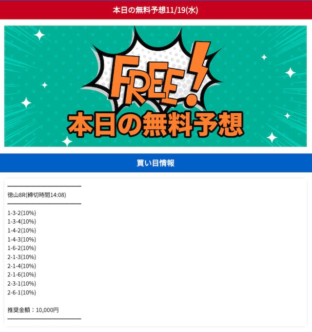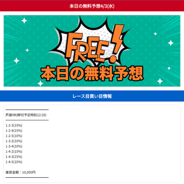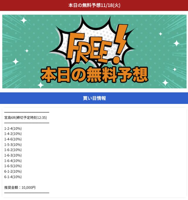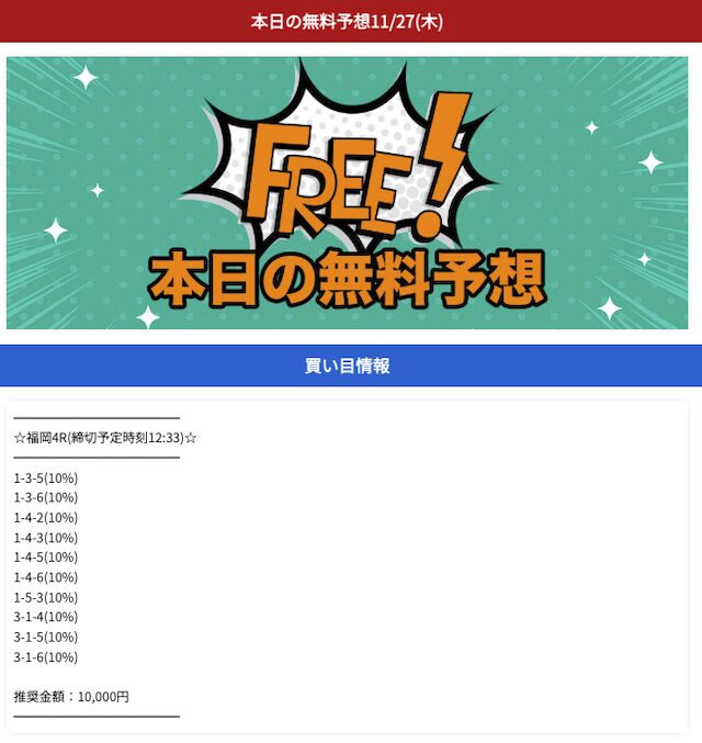 皆様も私と同様、無料予想で作った軍資金でプランを購入してみてください。