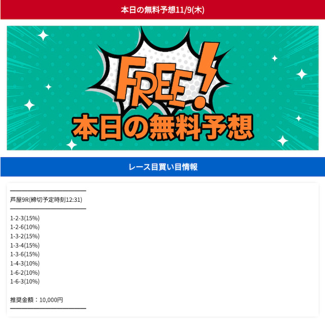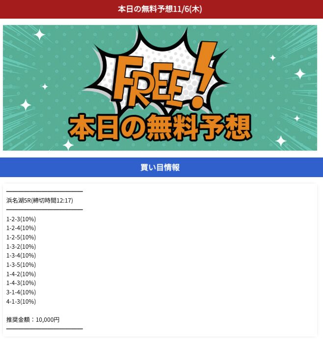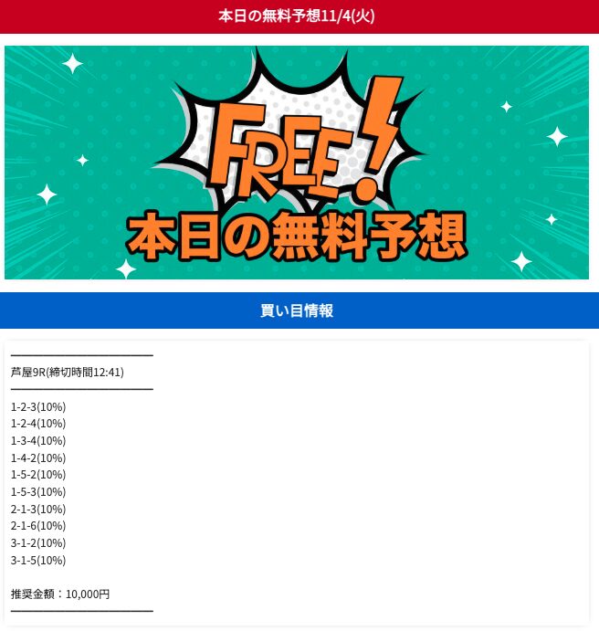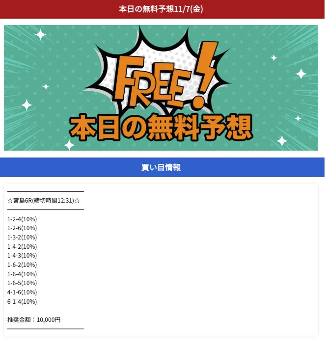 本日も無料予想を公開しているので、まずは買い目と結果の照合からでも始めてもらえればと思います。
