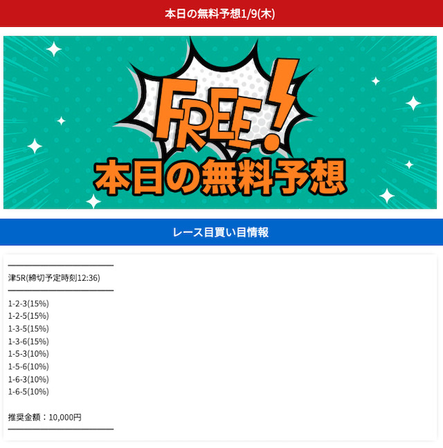 いきなりプランを買うのは怖いので、まずは無料で公開されている予想の精度を検証していきます。