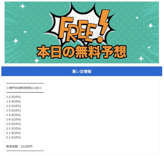 - 登録特典だけで購入できる有料予想が販売されている