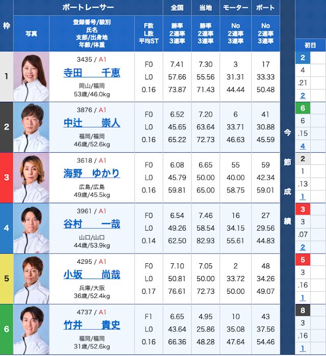 加えて2レース目は全選手がA1なので、実力者が揃うレースです。