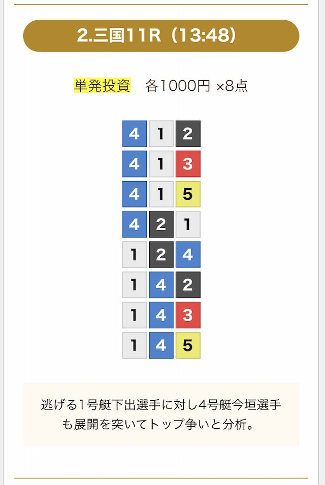 基本はセオリー通りの1号艇狙いなんだけど、たまーに4号艇のまくりを当ててくれちゃったりするんだよな。