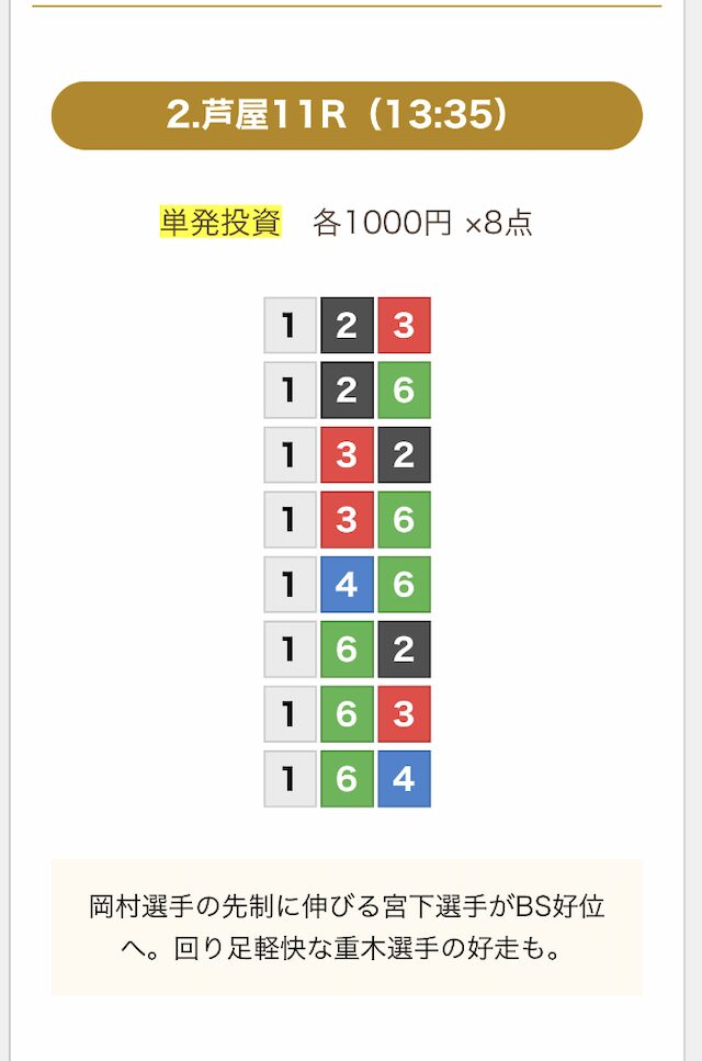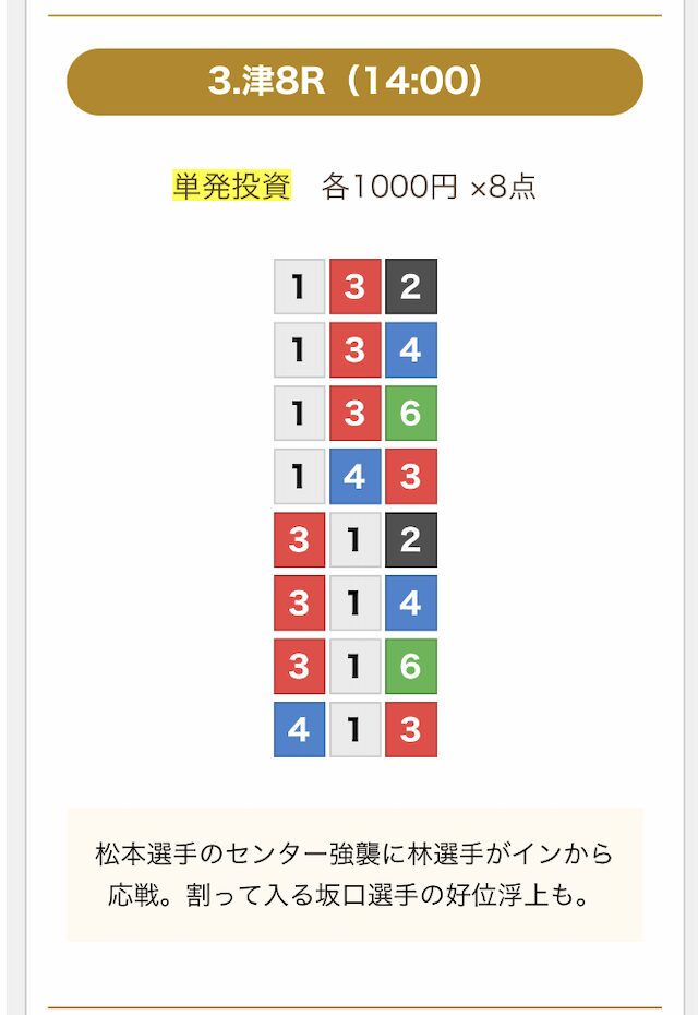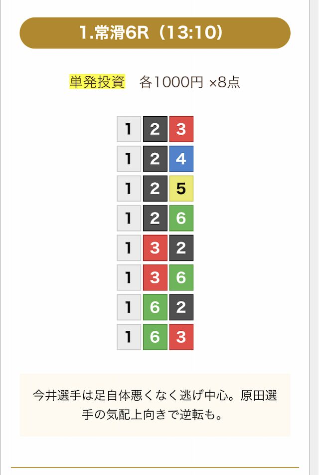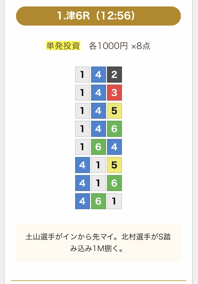 - 匿名6点構成でこれだけ仕上げてくるのはなかなかないと思う。 買い目に無駄がない感じがして、毎回「狙いどころが見えてるな」と思わされる。無理に荒らさず、でも避けるべき穴はちゃんと入ってる。