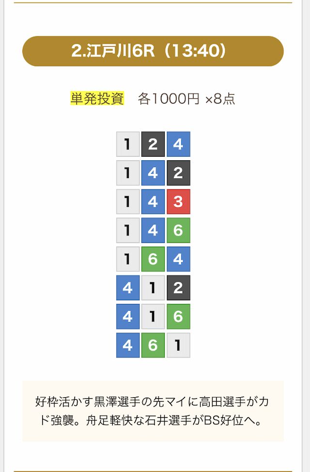 いきなり予想に乗るのが怖い方は、まずは提供された買い目と結果の照合からでも始めてみてはいかがでしょうか。
