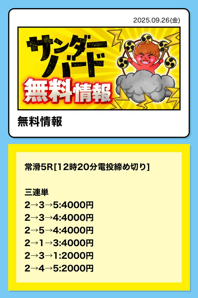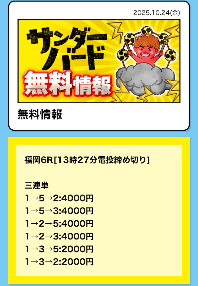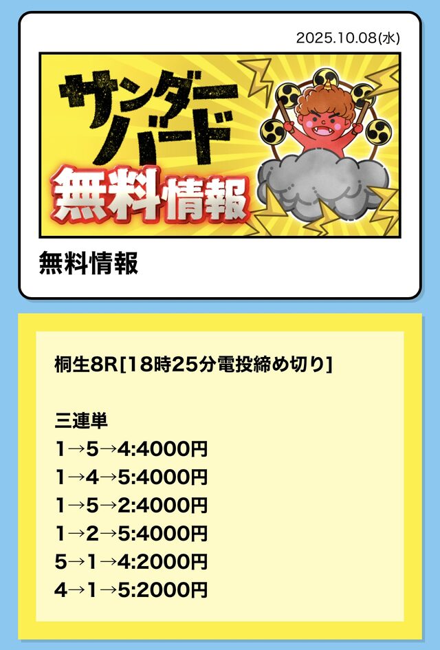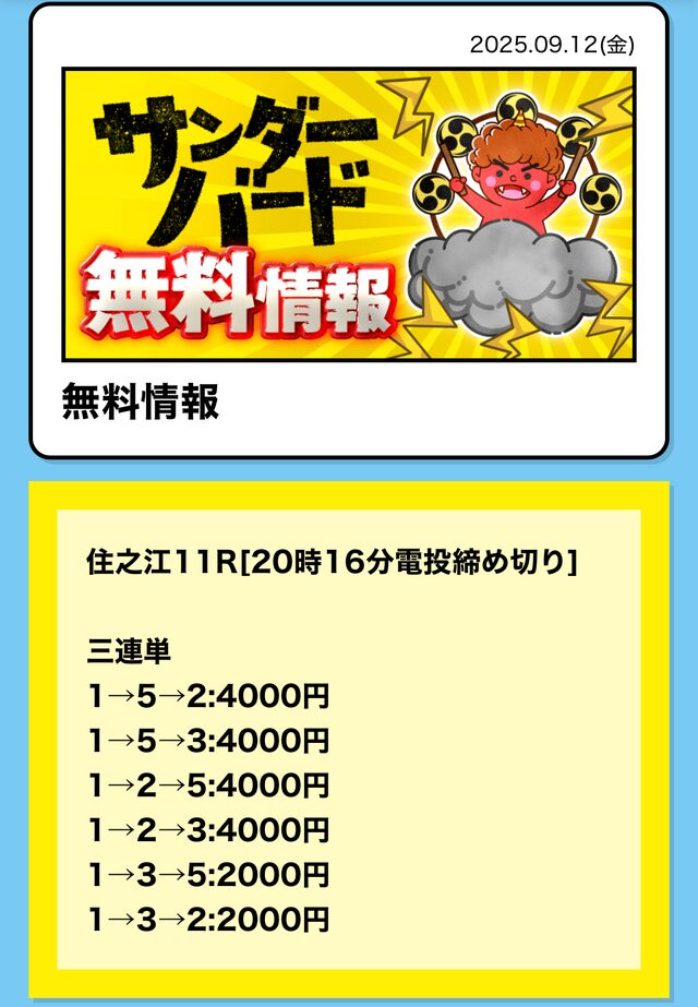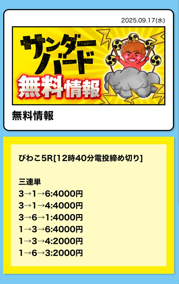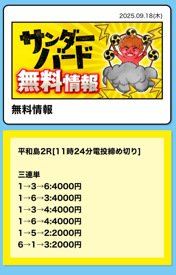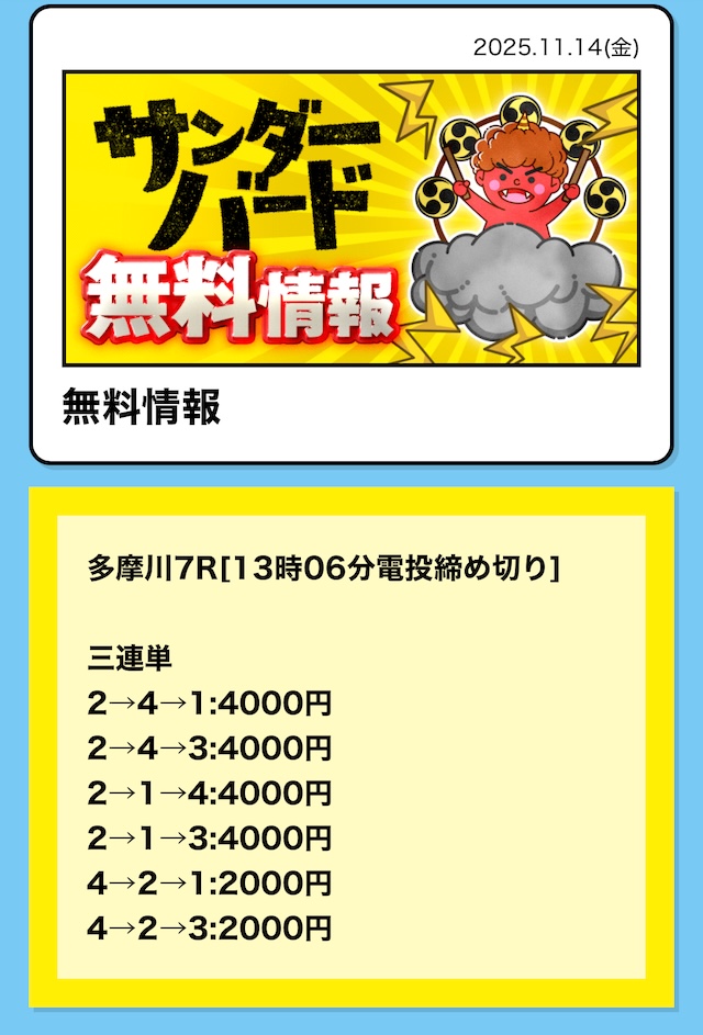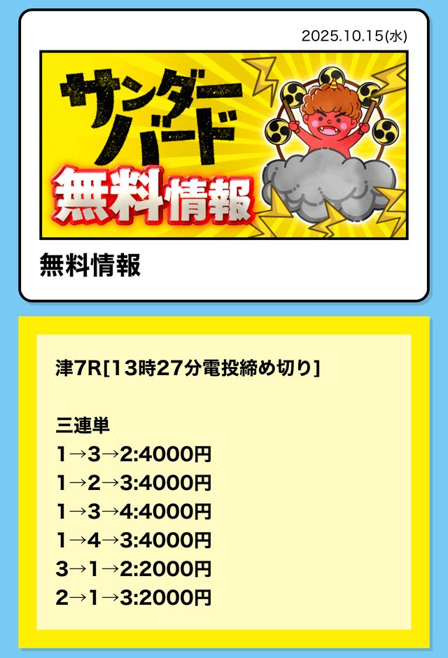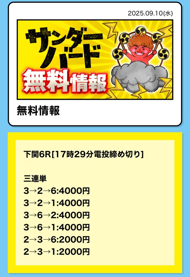 早速、アンケートの回答をもとに競艇サンダーバードの無料予想に参加して検証していきます。