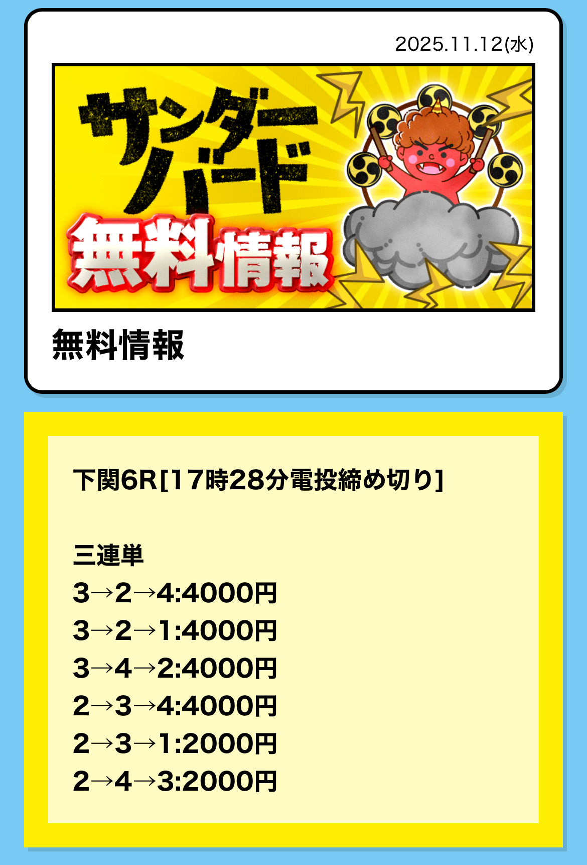 - 無料予想で一撃10万円以上の払戻実績アリ